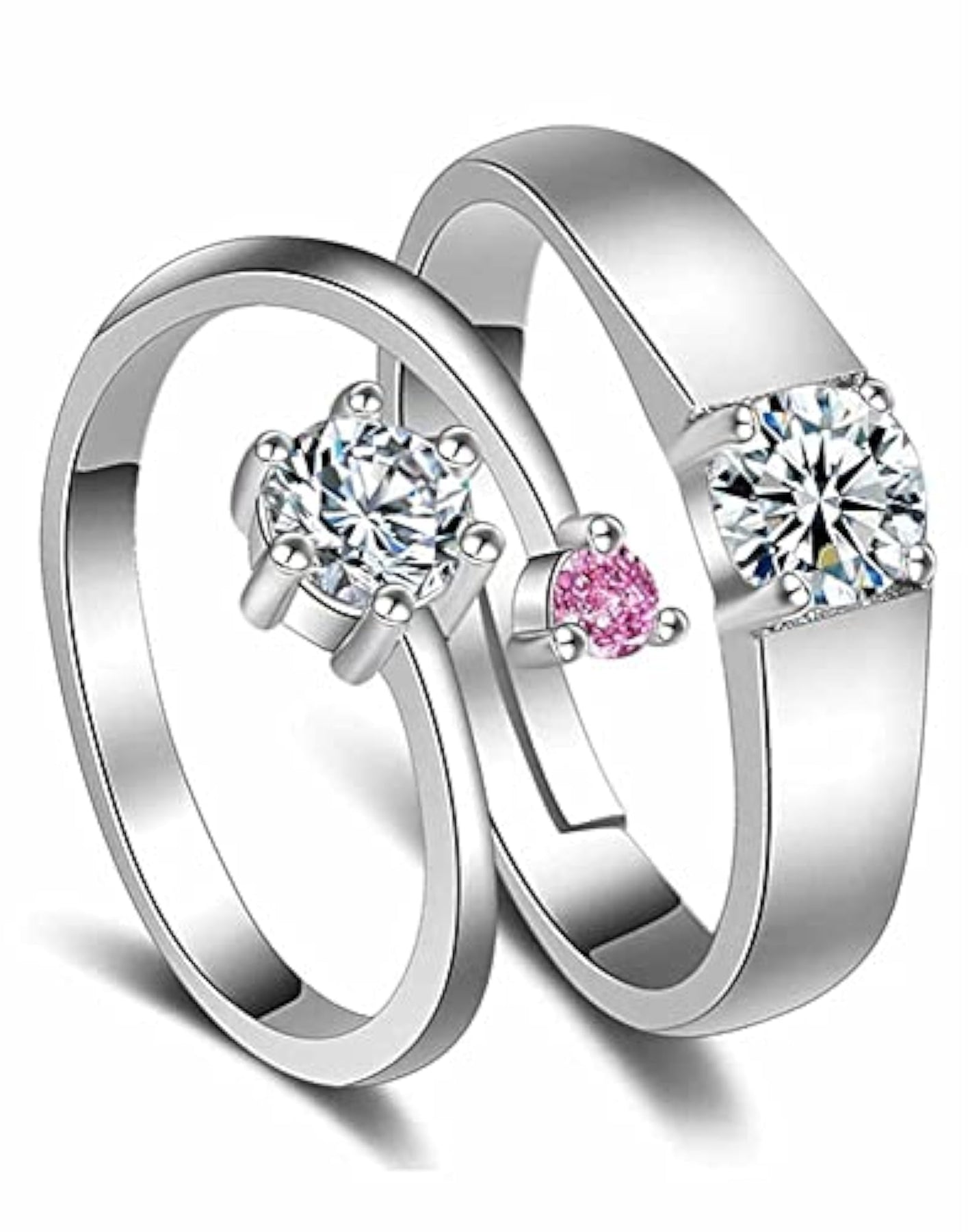 Add some bling to your relationship with these adjustable couple rings featuring sparkling cubic zirconia stones. Perfect for expressing your love and commitment.