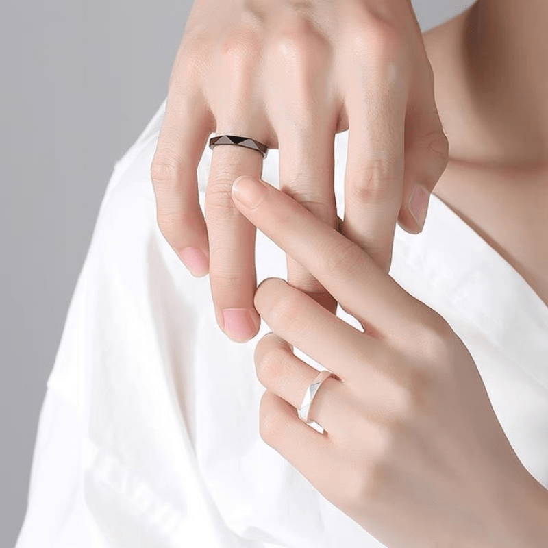 This open ring set is a perfect gift for couples celebrating their love. It is adjustable to fit both women and men.