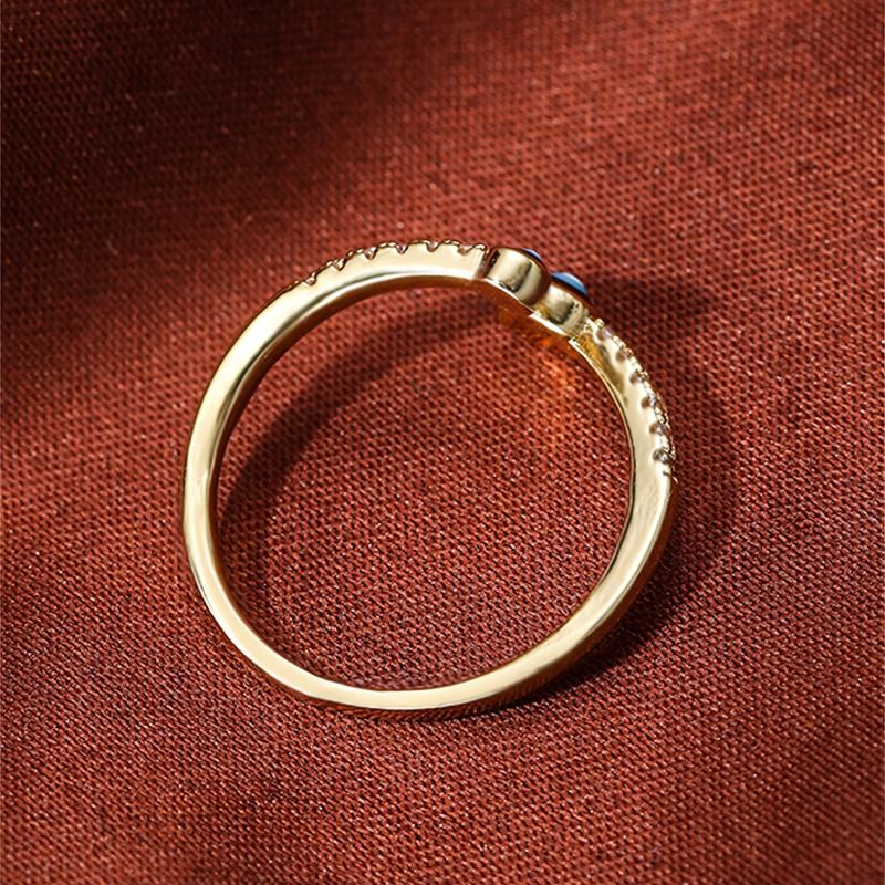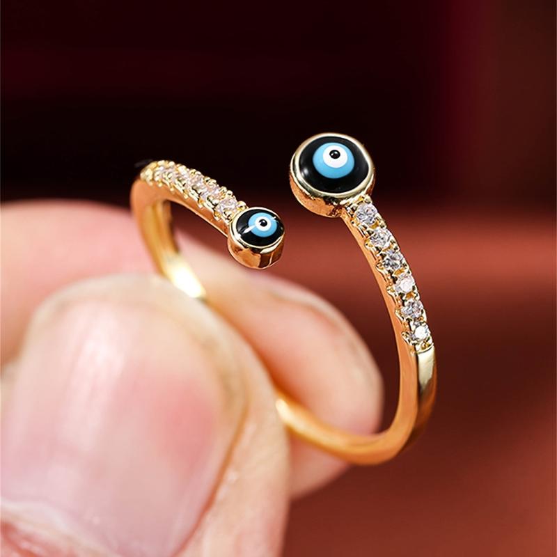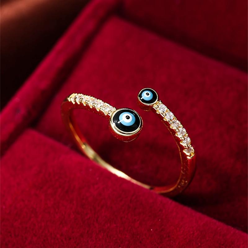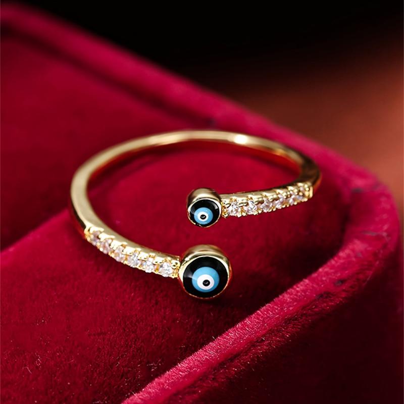 This golden evil eye ring for women features sparkling cubic zirconia accents, perfect for casual attire or parties.