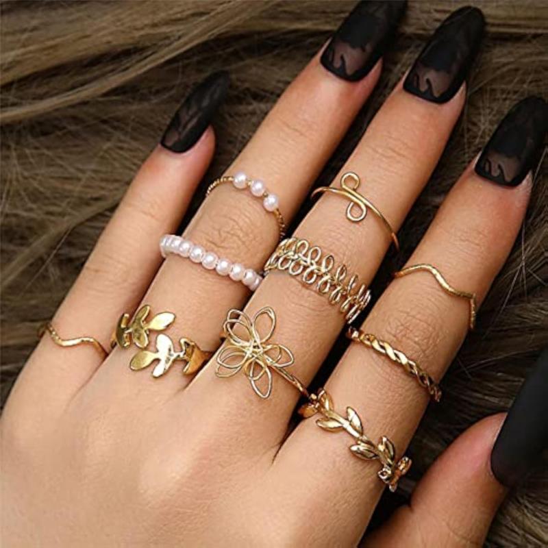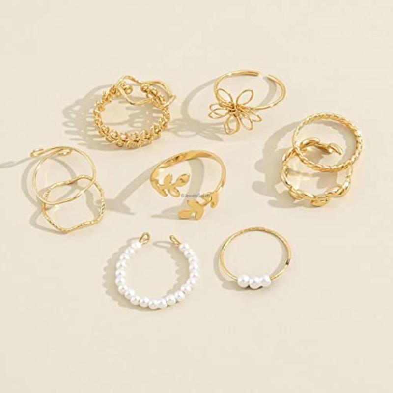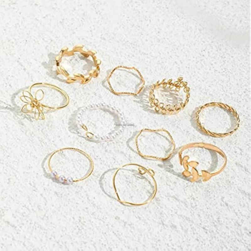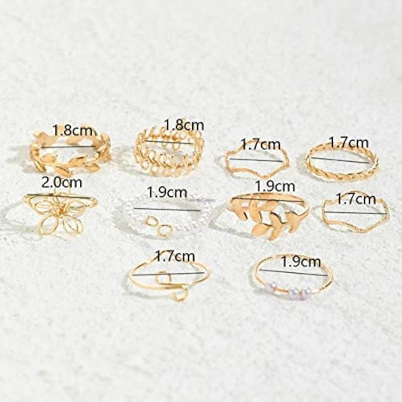 Enhance your look with this set of 10 floral finger rings. These stylish rings are plated with a durable metal for long-lasting shine.