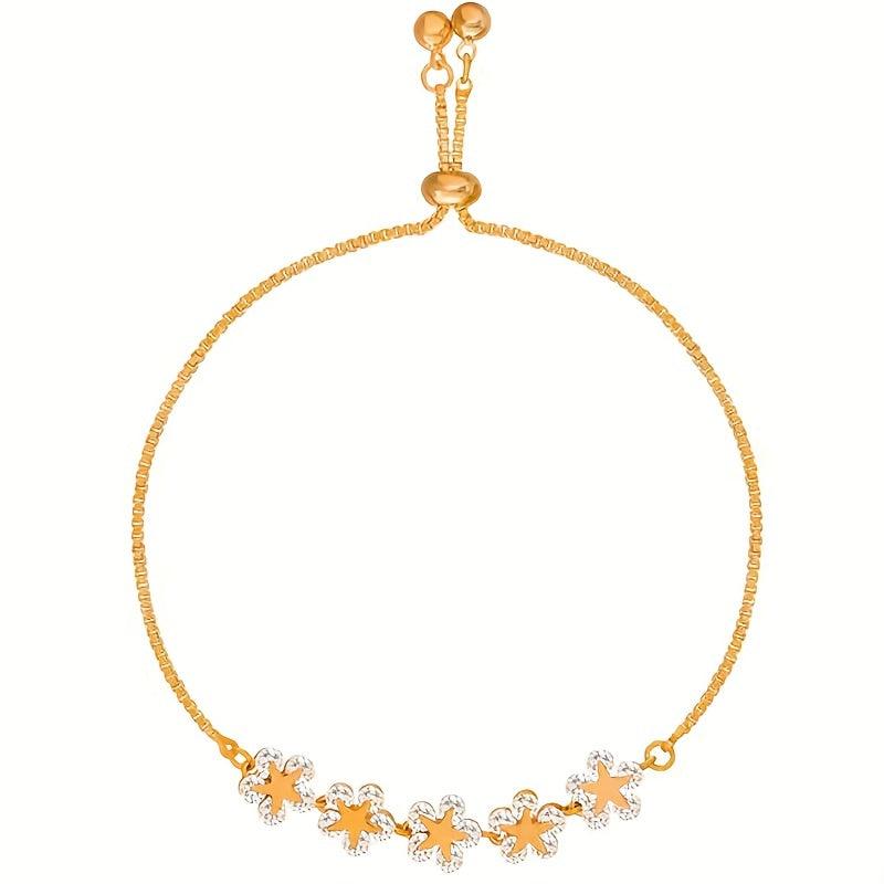 Elegant and stylish adjustable flower beaded chain bracelet with zircon inlays. Made of 14K plated copper, this hand jewelry adds a touch of glamour to any outfit.