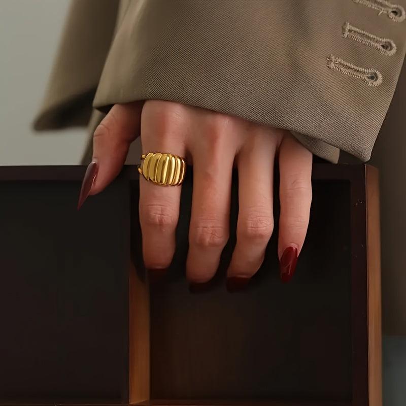 Elevate your style with this chic geometric ring made of stainless steel. Perfect for daily wear or parties. Makes a great gift for any occasion!