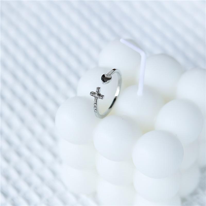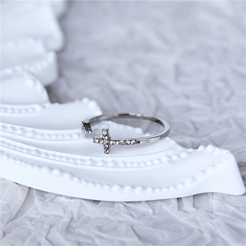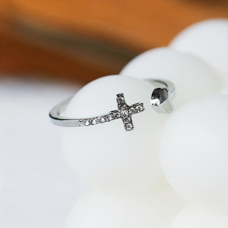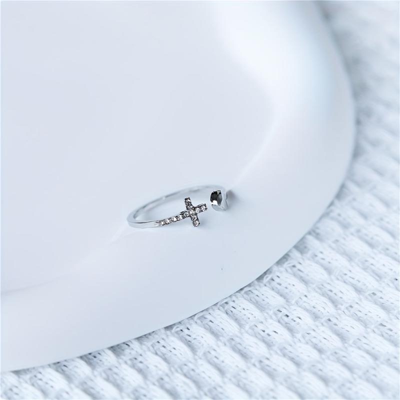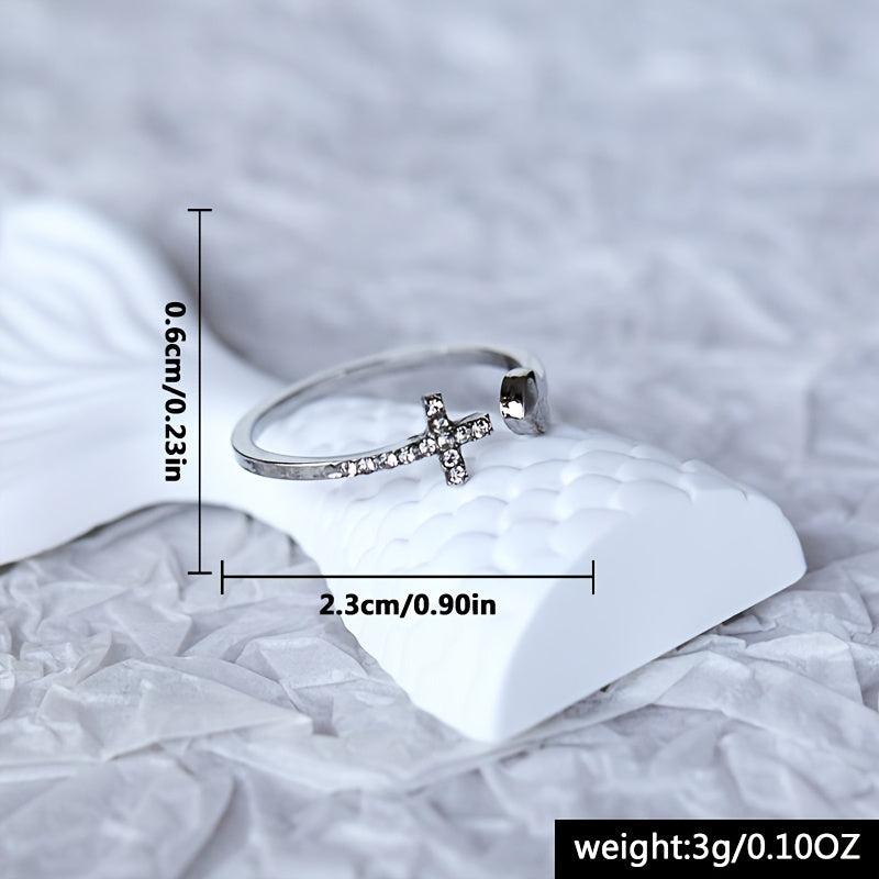 Add a touch of elegance to your look with this adjustable open heart cross ring adorned with synthetic zirconia stones. A versatile and stylish piece suitable for all seasons and occasions.