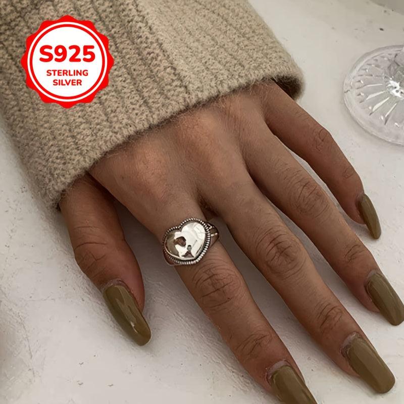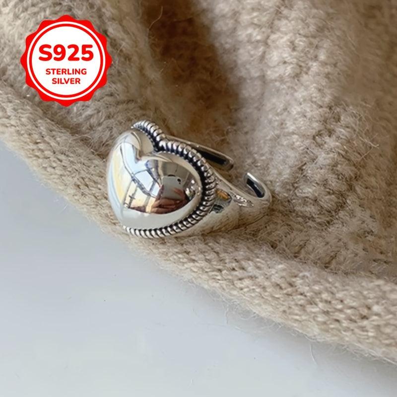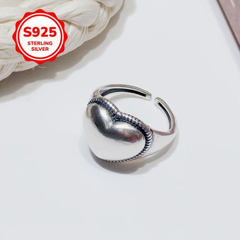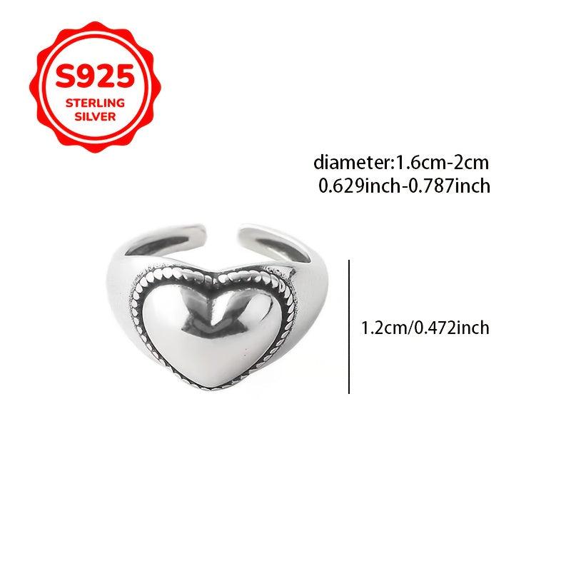 This sterling silver 925 ring features a heart pendant on a wide face vintage style design. It is adjustable to fit any finger, making it an ideal gift for couples, friends, and loved ones.