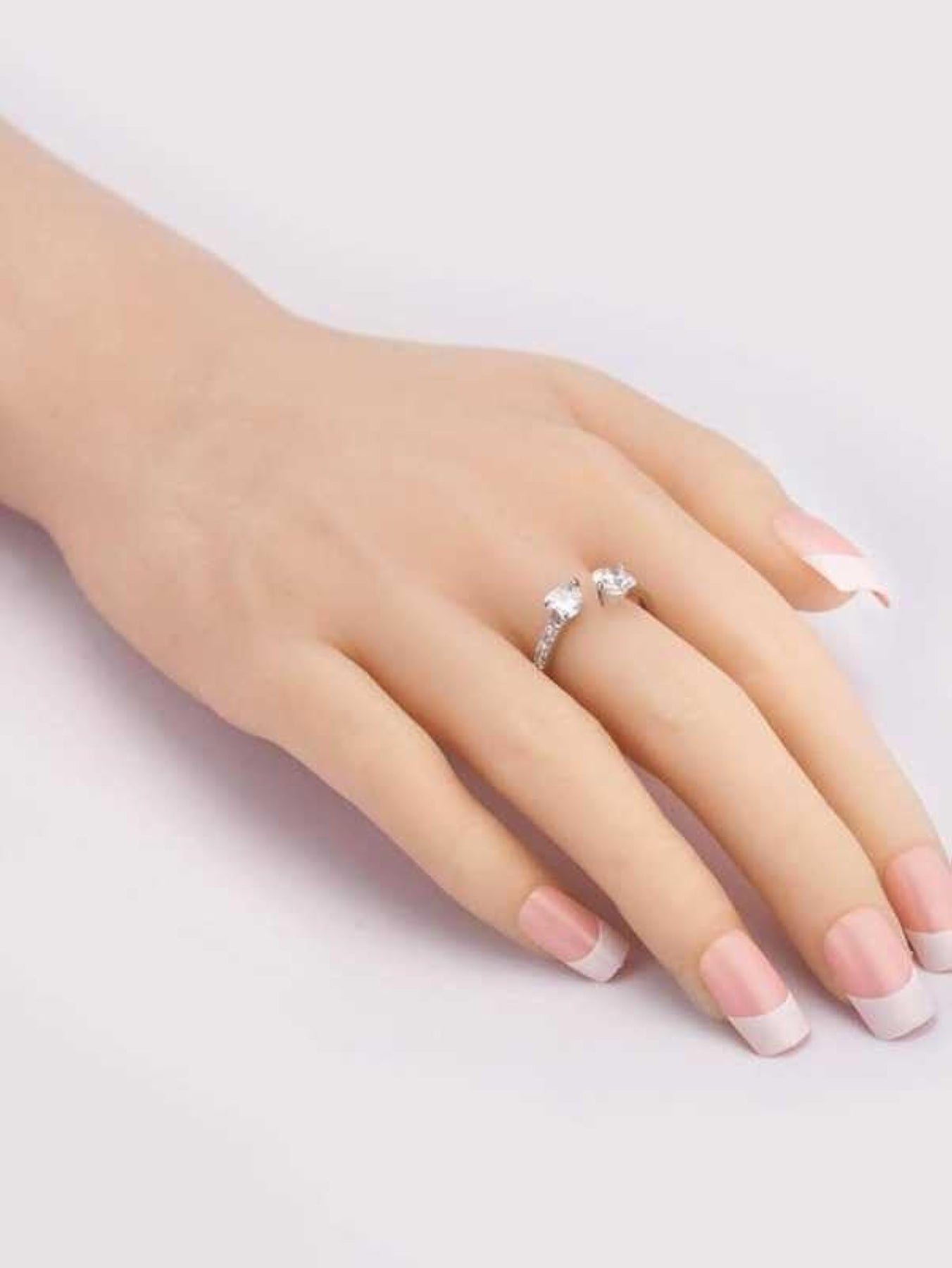 Elegant silver plated ring featuring a heart design with sparkling cubic zirconia, perfect for teen girls and women.
