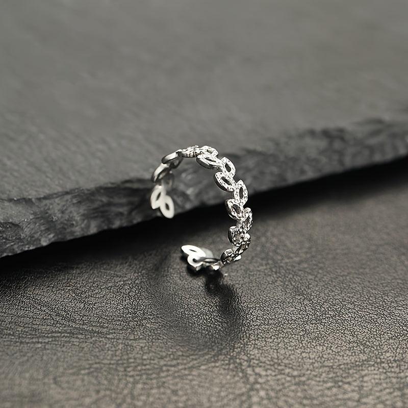 This adjustable ring features a heart and willow leaf design, made of durable stainless steel. Perfect for fall and winter seasons.