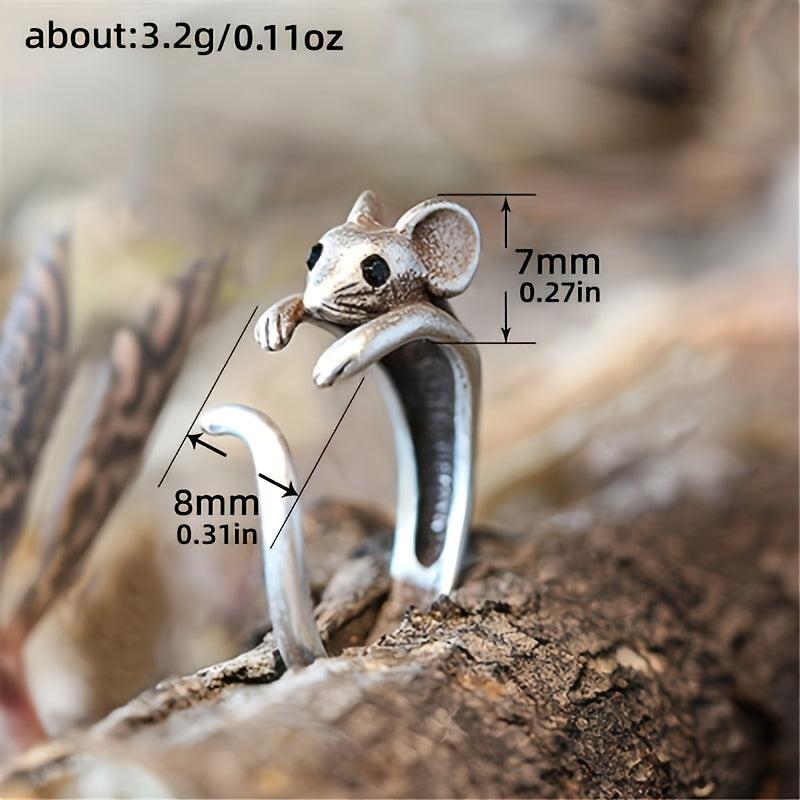 This unique unisex ring features a small mouse design with synthetic zircon, perfect for both men and women.