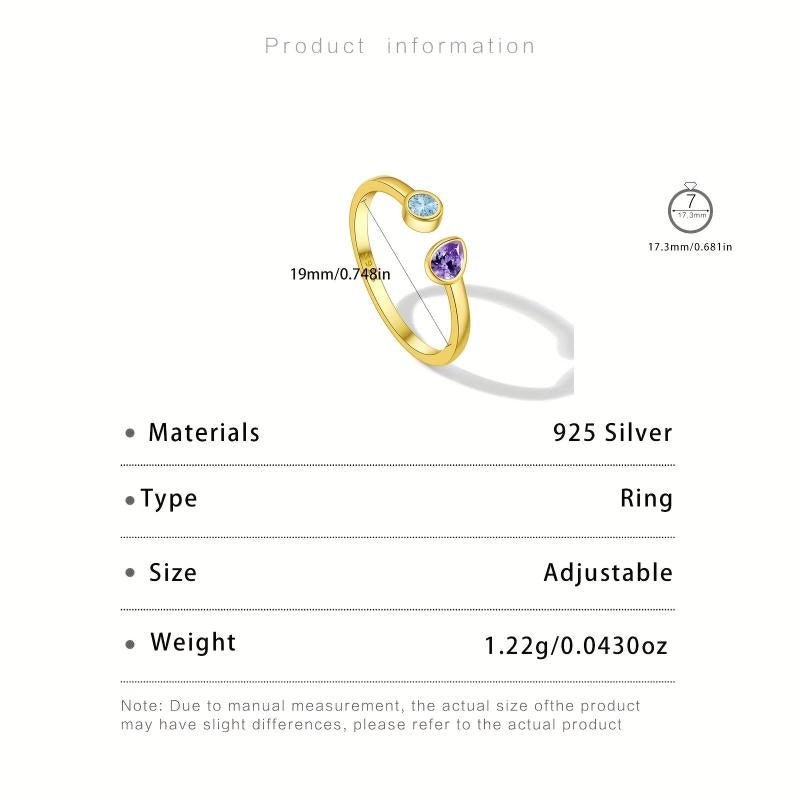 This adjustable open ring is made of 925 sterling silver with 18k gold plating and synthetic zirconia, perfect for all season wear. It's a great gift for your wife or girlfriend.