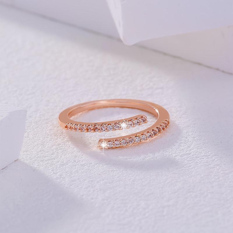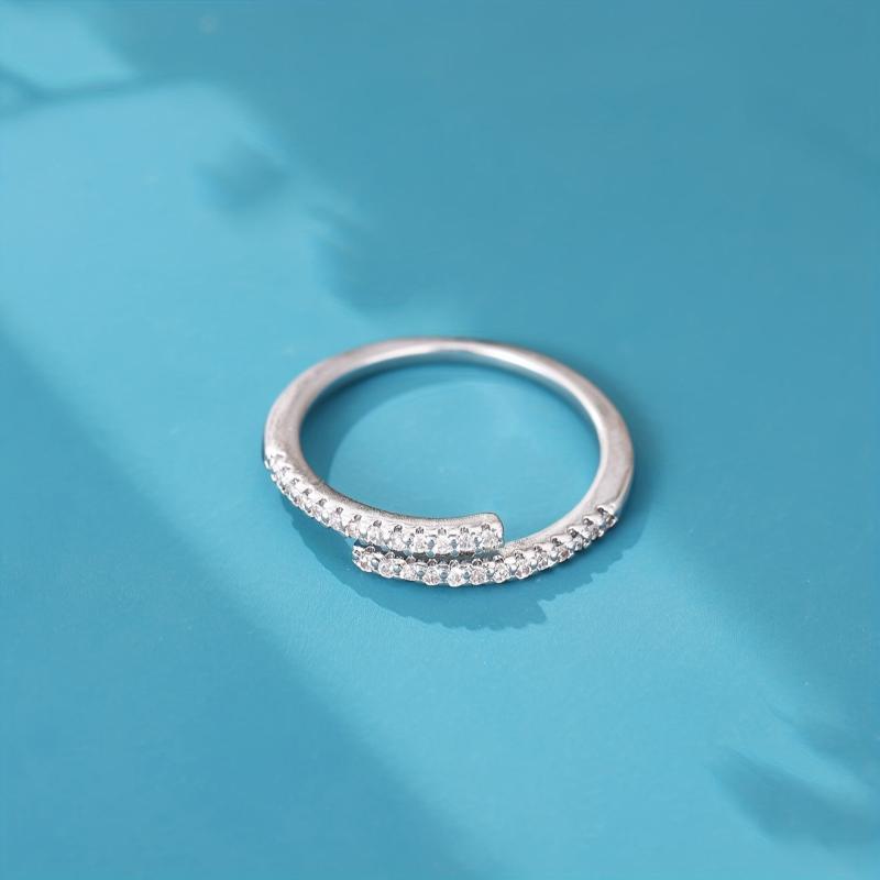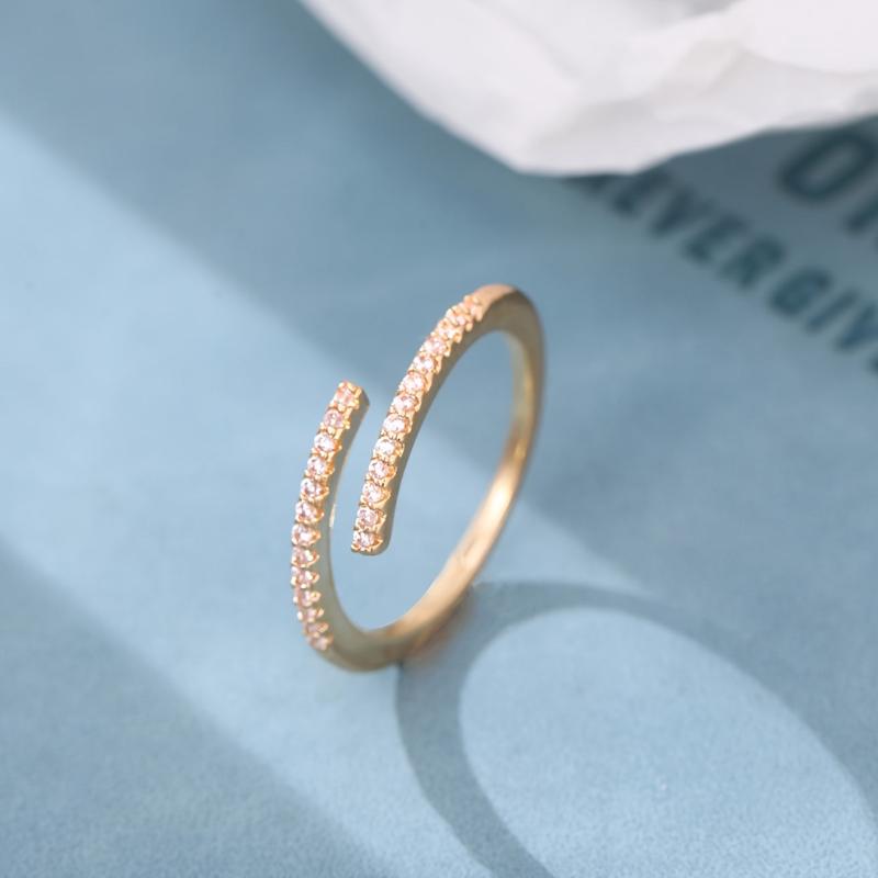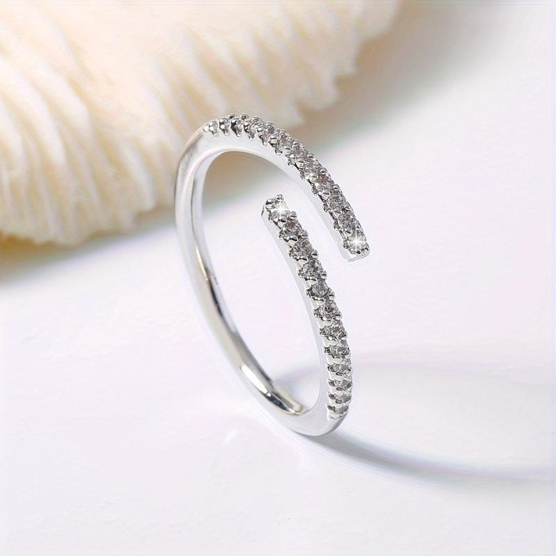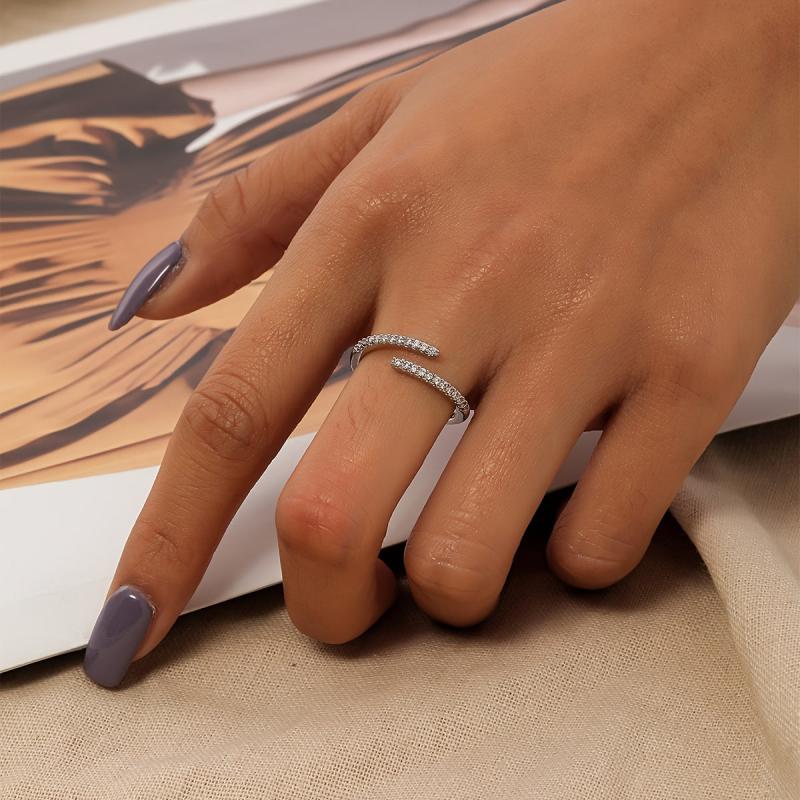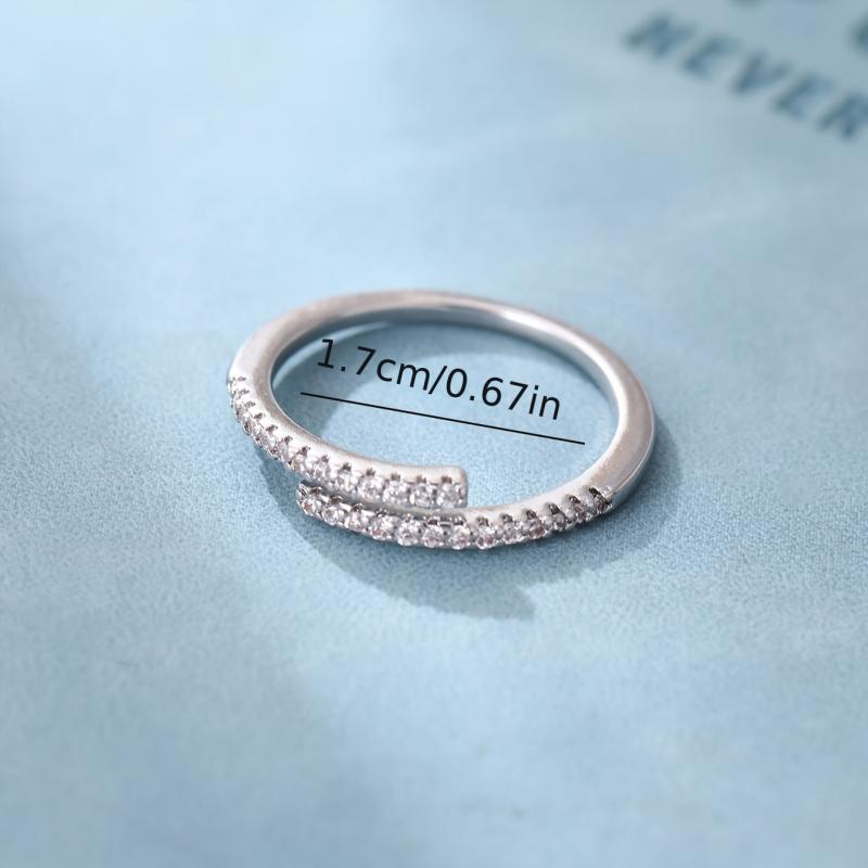 This sleek adjustable ring features a band adorned with sparkling cubic zirconia, perfect for daily wear or vacation jewelry.