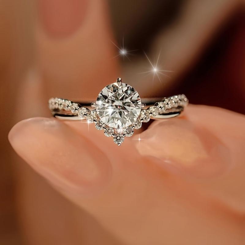 Make a statement with this sparkling cubic zirconia engagement ring. Featuring a princess cut stone in a rose gold setting, this ring is perfect for weddings and special occasions.