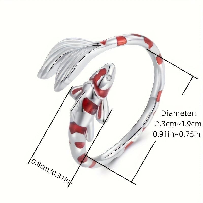 This fashionable ring features a unique red porcelain koi design, making it a creative party accessory for daily wear or as a stylish gift. The adjustable design ensures a comfortable fit.