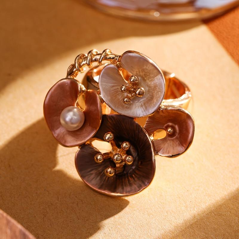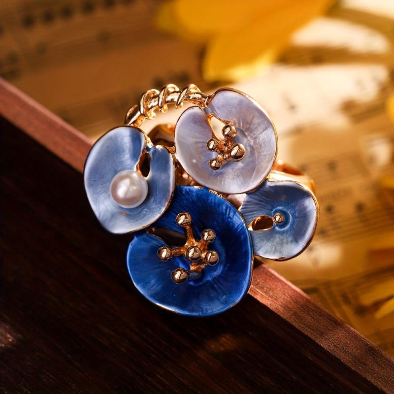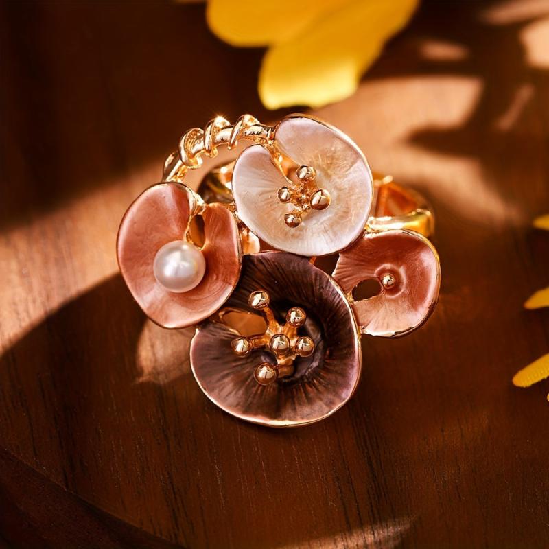 Elevate your style with this elegant adjustable ring featuring a faux pearl and floral inlay in a golden tone. Perfect for weddings, parties, and daily wear, this versatile jewelry piece adds a touch of sophistication to any outfit.