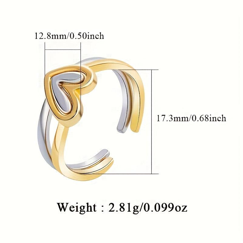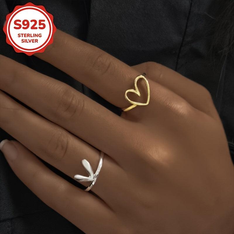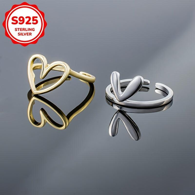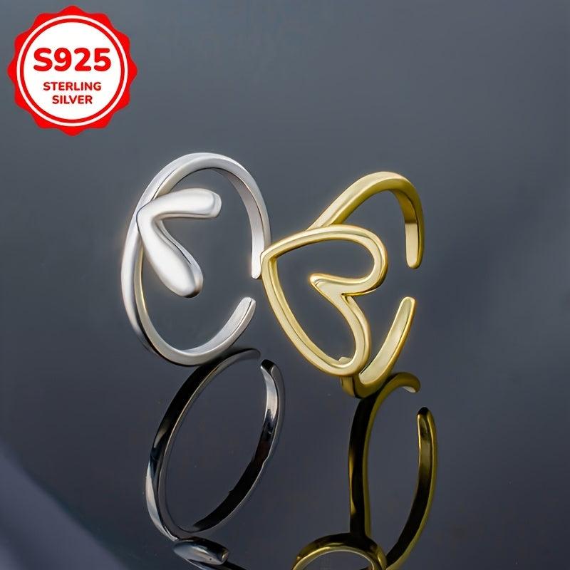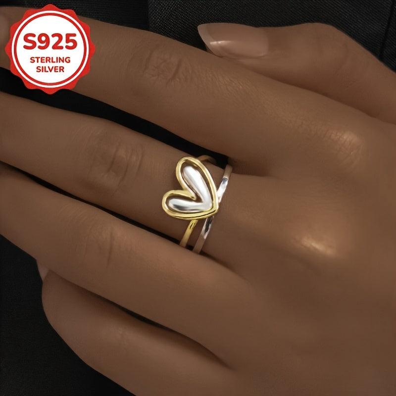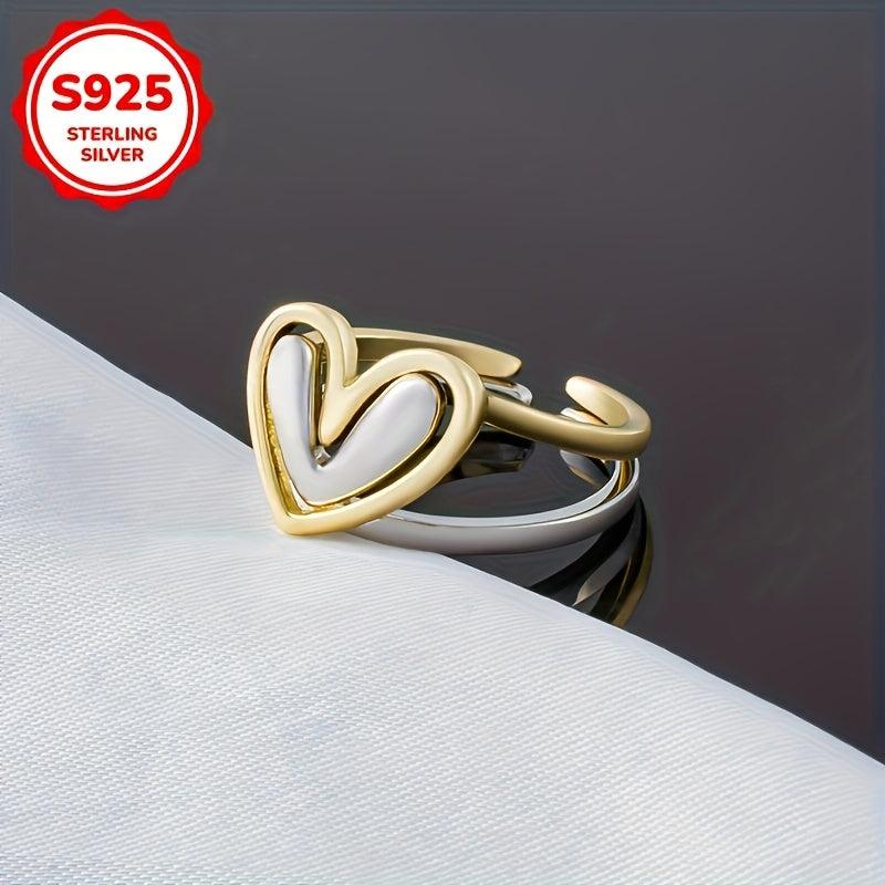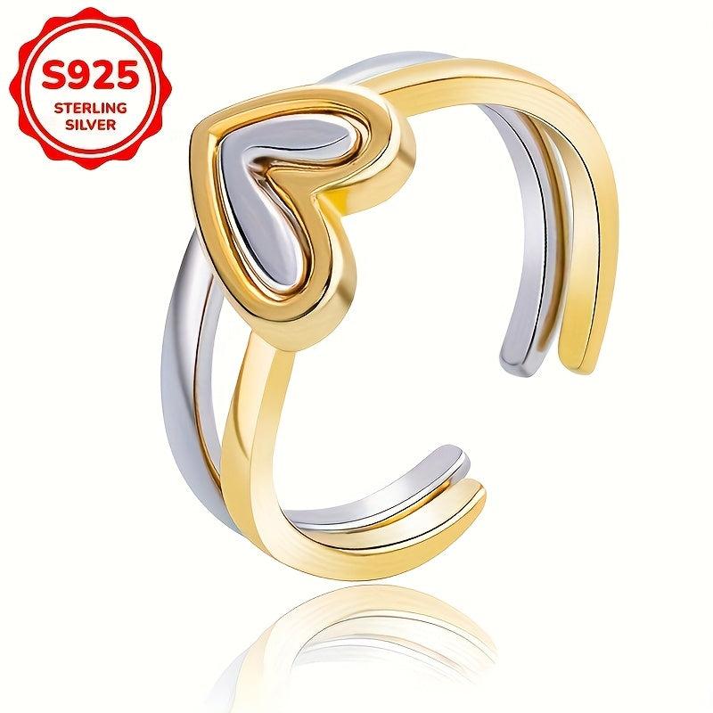 This adjustable S925 sterling silver ring features a heart design with two-tone detailing, perfect for casual attire or gifting to a loved one.