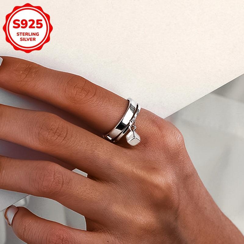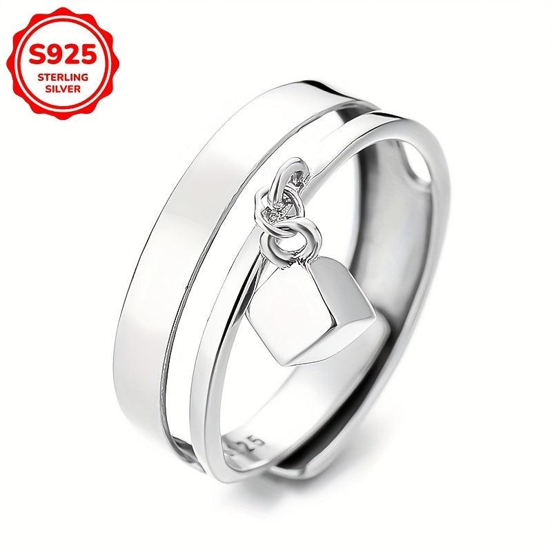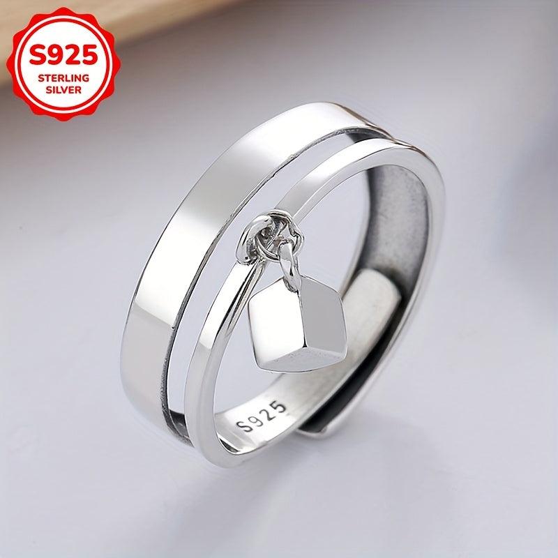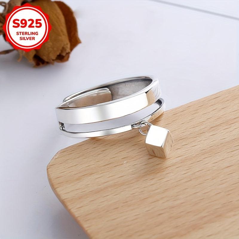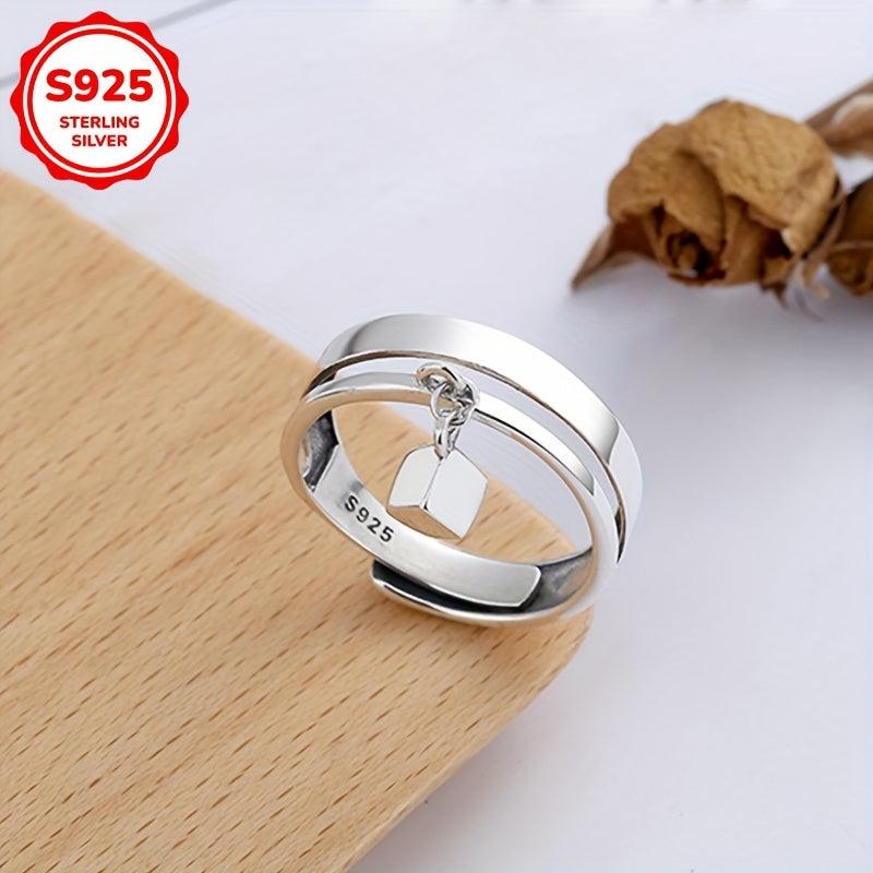 This sterling silver open ring features a double layer square design with a smooth polished finish. It is lightweight at 3.4g and is perfect for daily wear or special occasions.