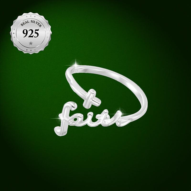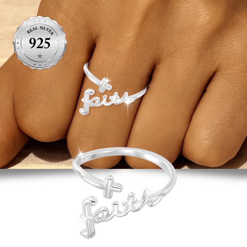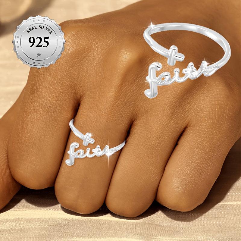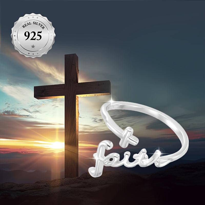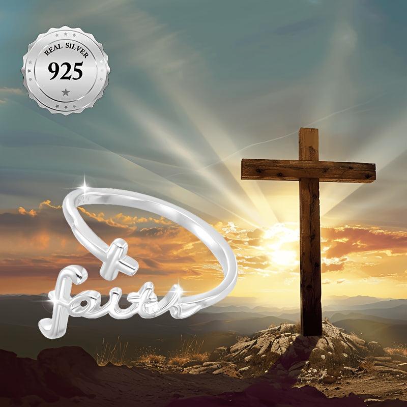 This vintage style silver ring features a cross and faith engraving, making it perfect for Valentine's festive occasions and daily wear. Hypoallergenic and high-quality 925 sterling silver construction.