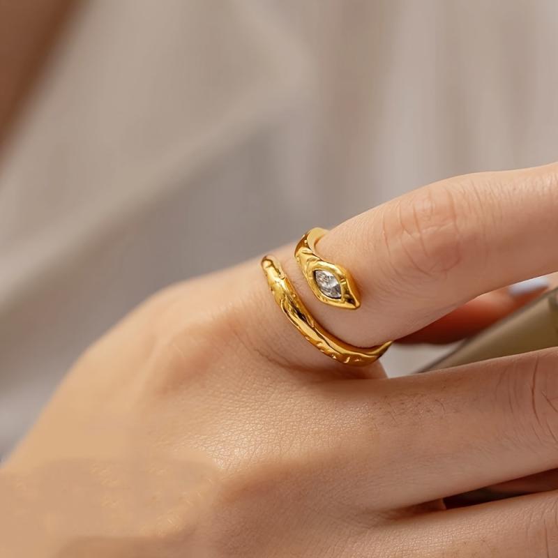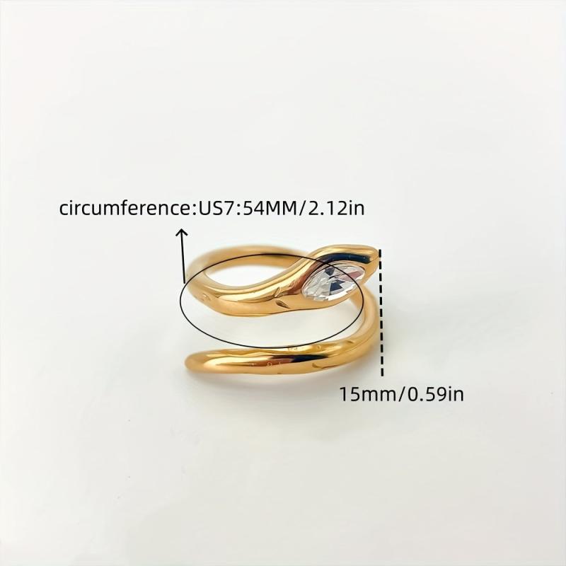 This unique snake ring features a golden tone stainless steel design with glass accents, making it perfect for casual attire and gift giving. It is adjustable and irregular in shape, ideal for daily wear.
