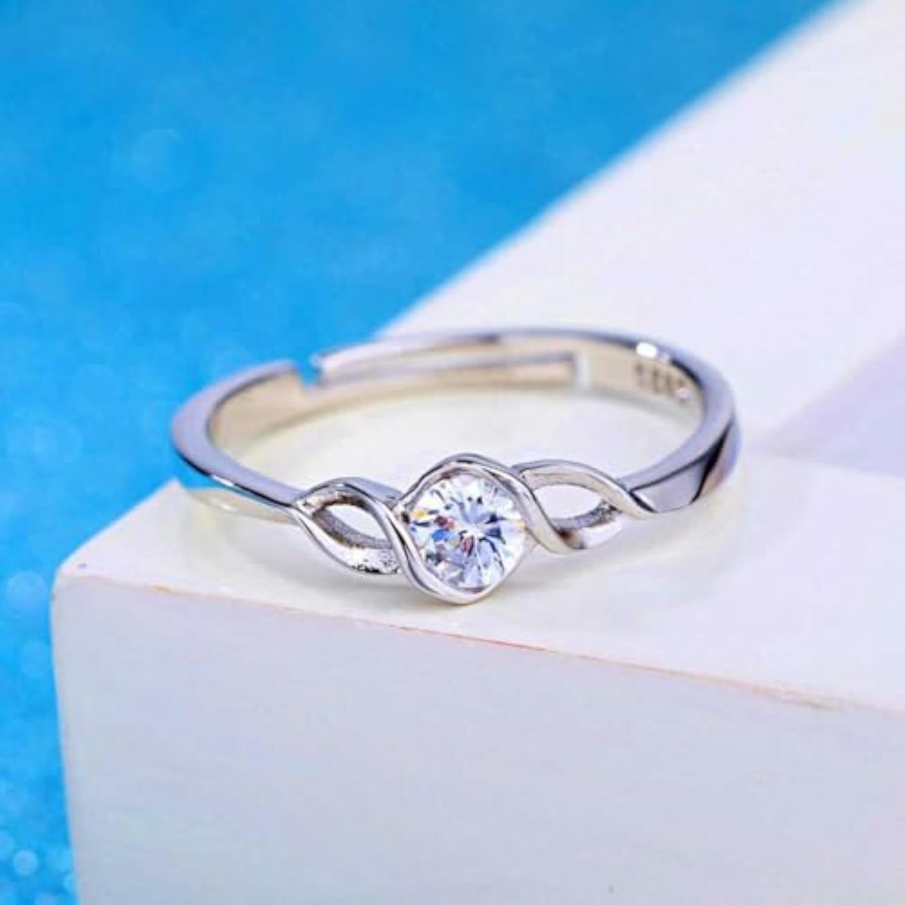Beautiful silver plated adjustable ring with sparkling cubic zirconia stone, perfect for teen girls and women.