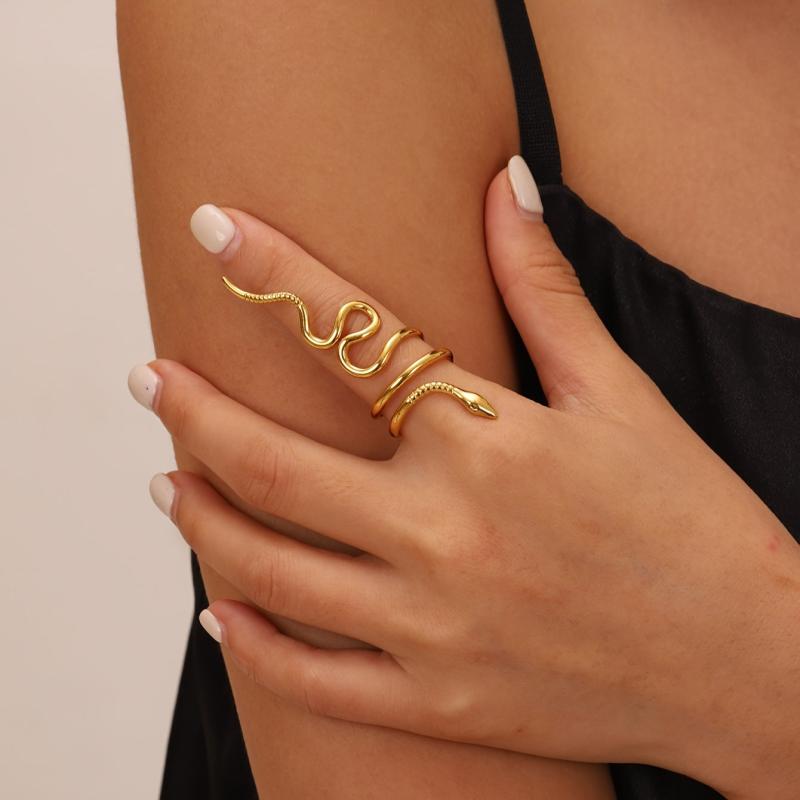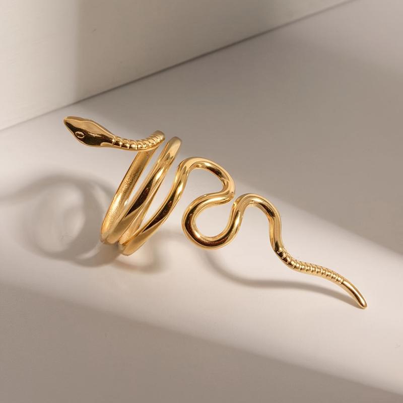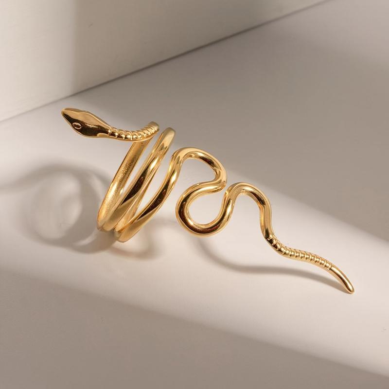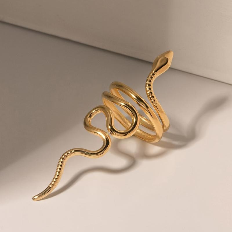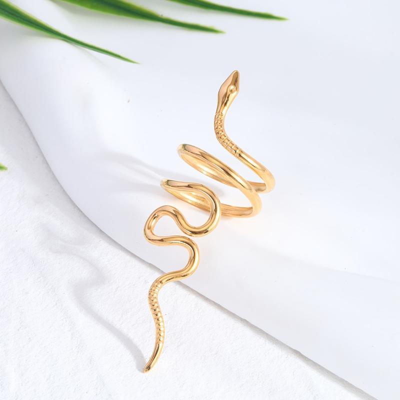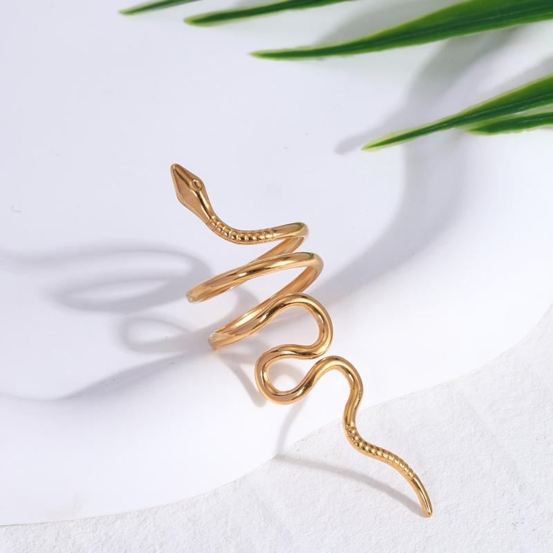 Add a touch of edgy style to your outfit with this unique snake ring. Made of stainless steel in a gothic punk design, this open finger ring is adjustable to fit most sizes.