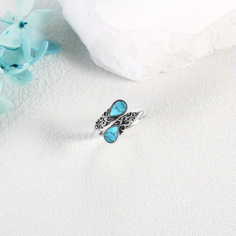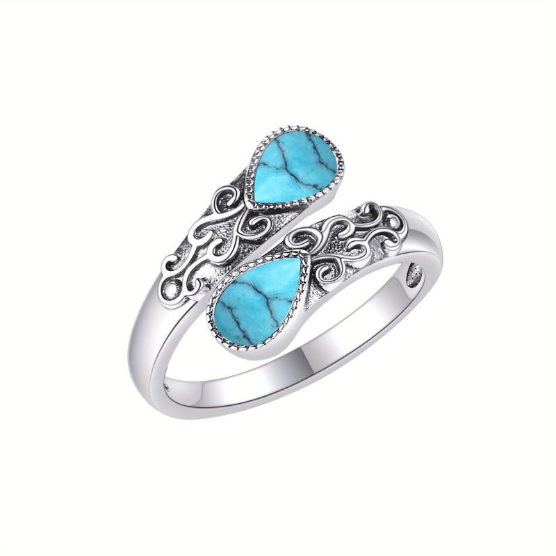 Add a touch of elegance to your look with this stylish synthetic turquoise ring. The adjustable band ensures a perfect fit for any finger size.