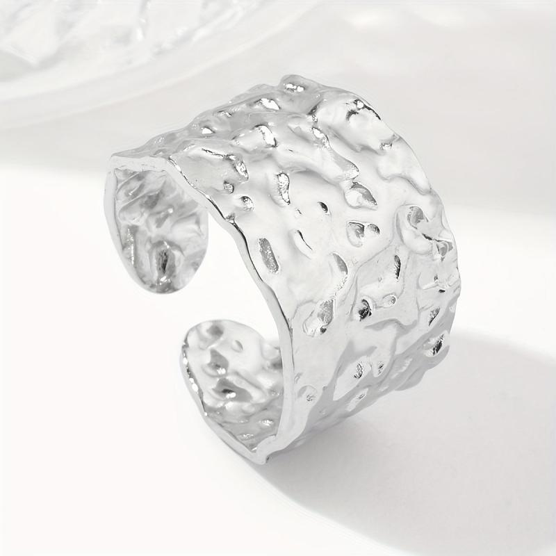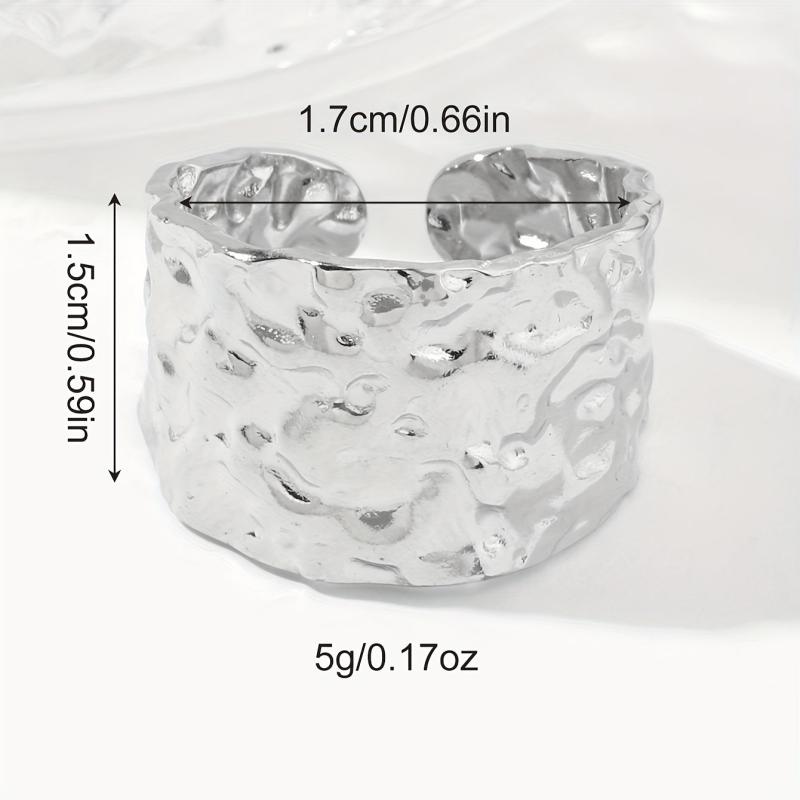 Elegant vintage ring with a wide stainless steel band and leopard print design in golden tones. Adjustable size for a comfortable fit.