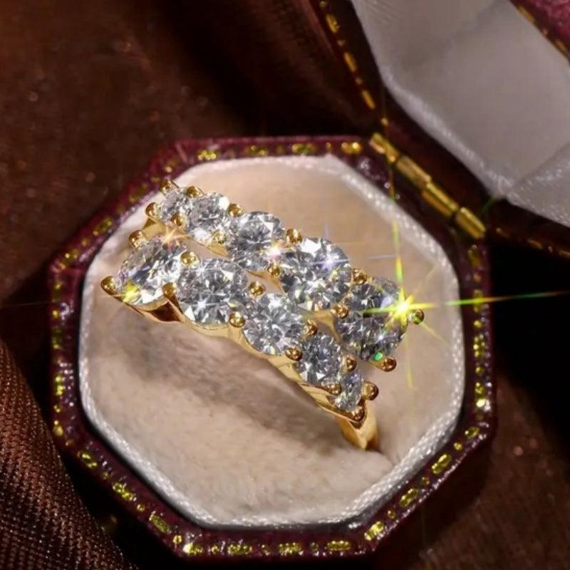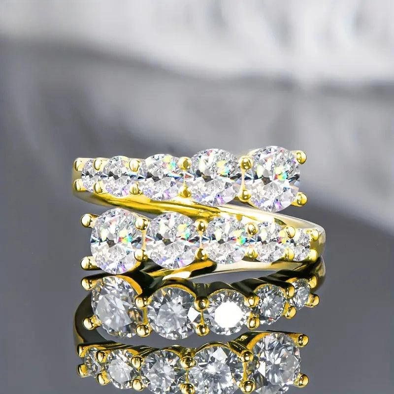 Add a touch of elegance to your outfit with this adjustable ring featuring sparkling synthetic zirconia stones. Perfect for weddings, parties, and casual attire. No box included.