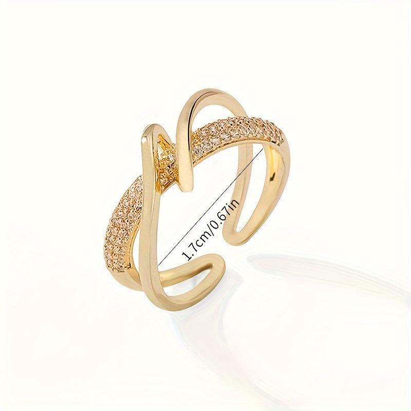 This stylish open ring features zirconia stones and is made of high-quality copper. It is adjustable to fit various finger sizes.