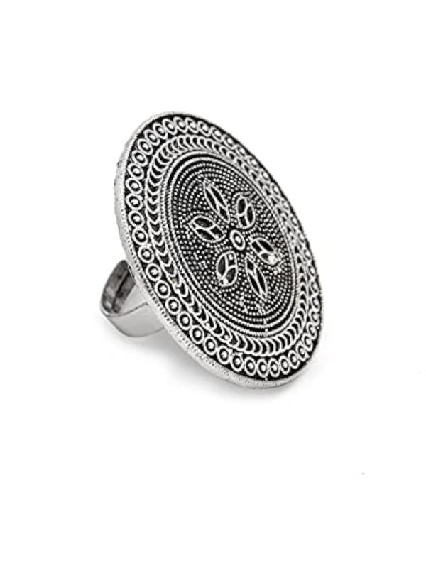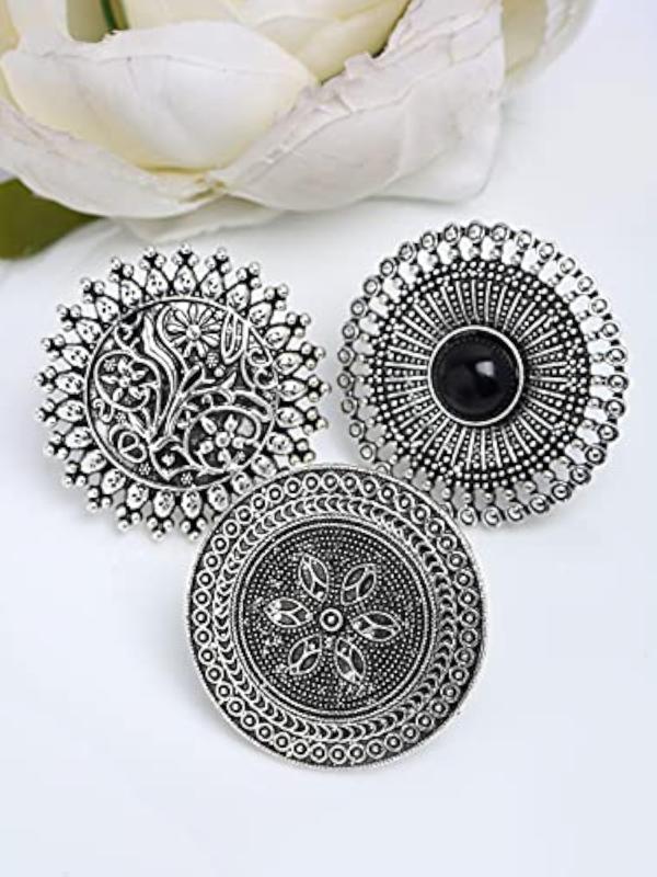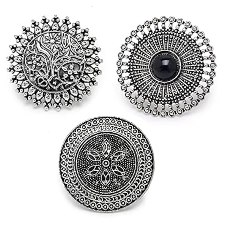 Elegant set of 3 oxidised plated rings with intricate tribal design. Suitable for both men and women.