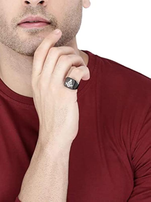 This ring features a Masonic logo, making it a stylish choice for those who appreciate Freemason symbolism. Made from durable titanium steel, it's perfect for casual wear.