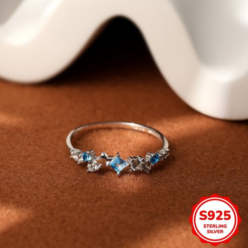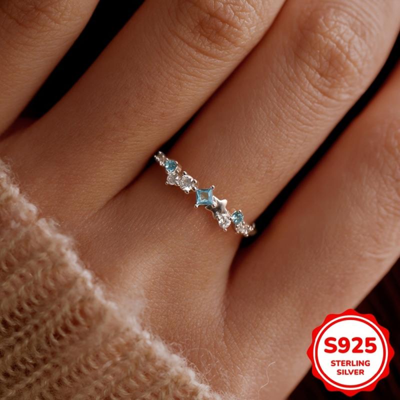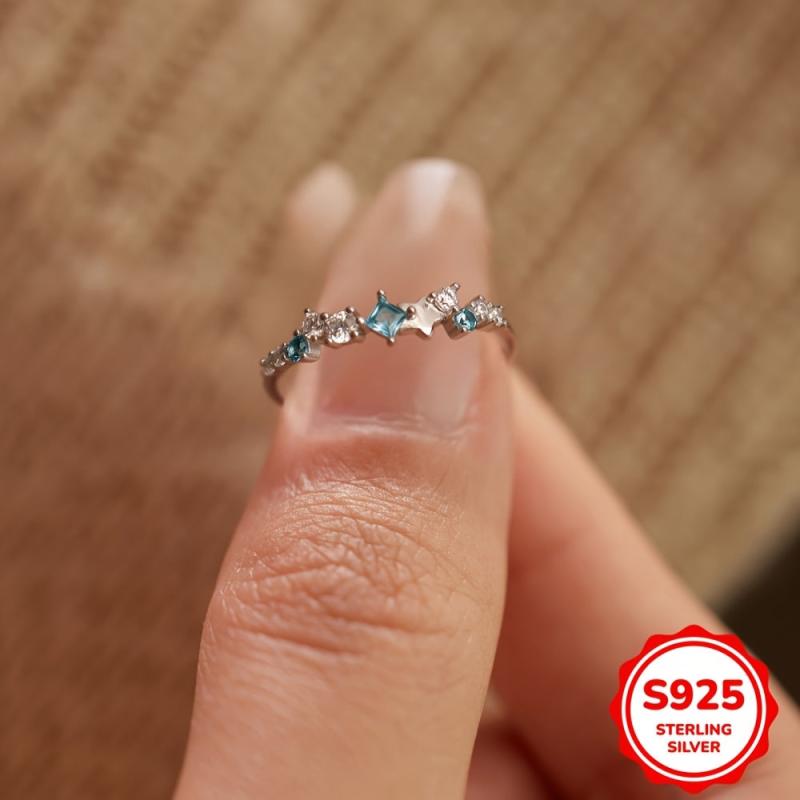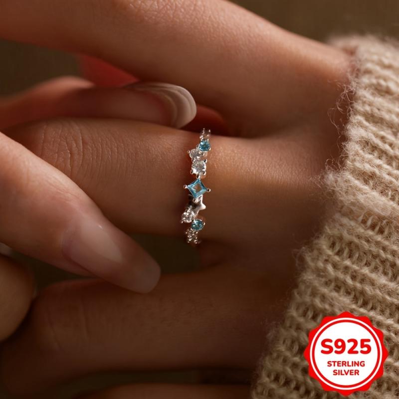 Shine bright with this stylish S925 sterling silver ring featuring a synthetic pentagonal star design accented with dazzling CZ stones. Stackable for a trendy look.