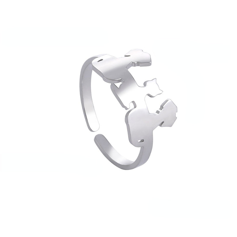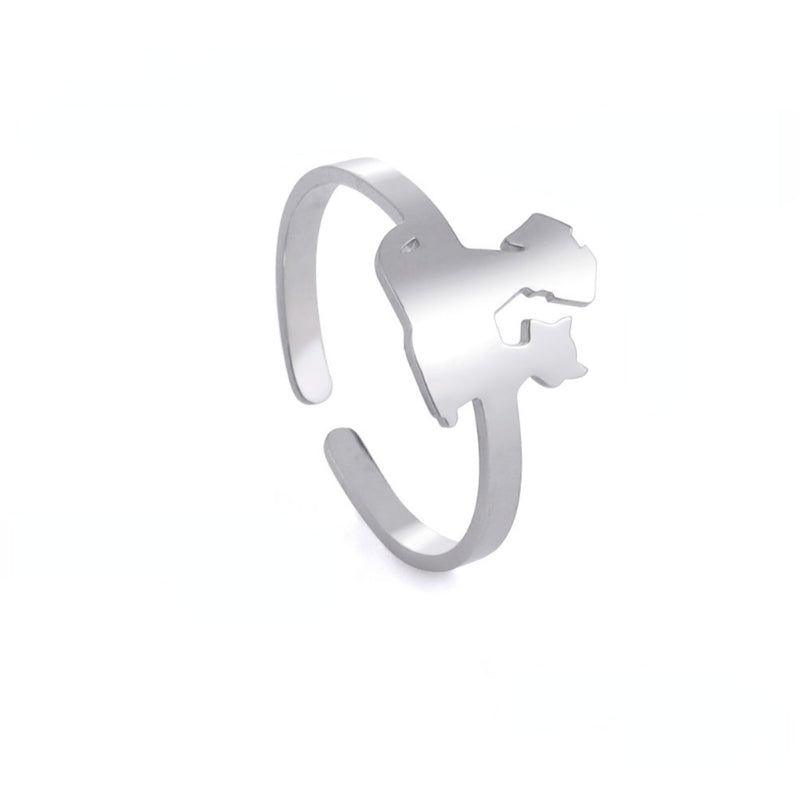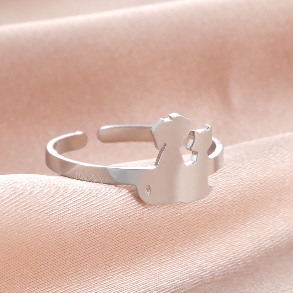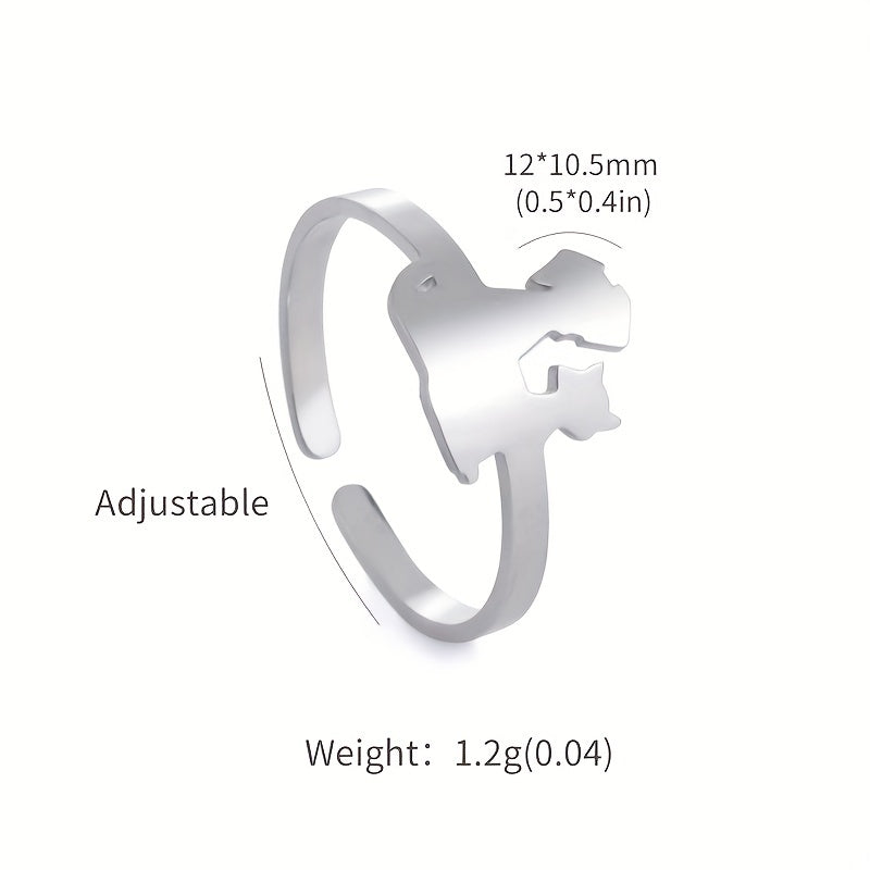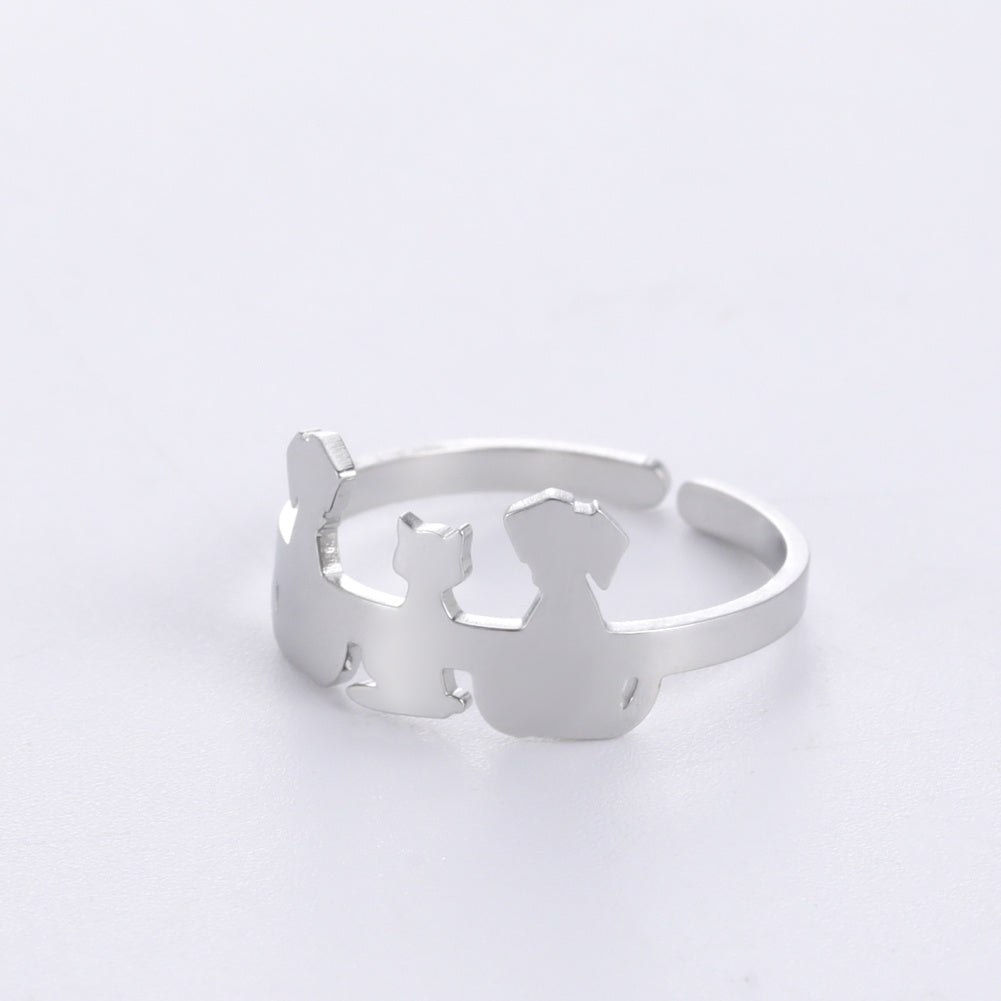 This lovely stainless steel ring features a charming design of a dog and cat. It is a perfect accessory for animal lovers.