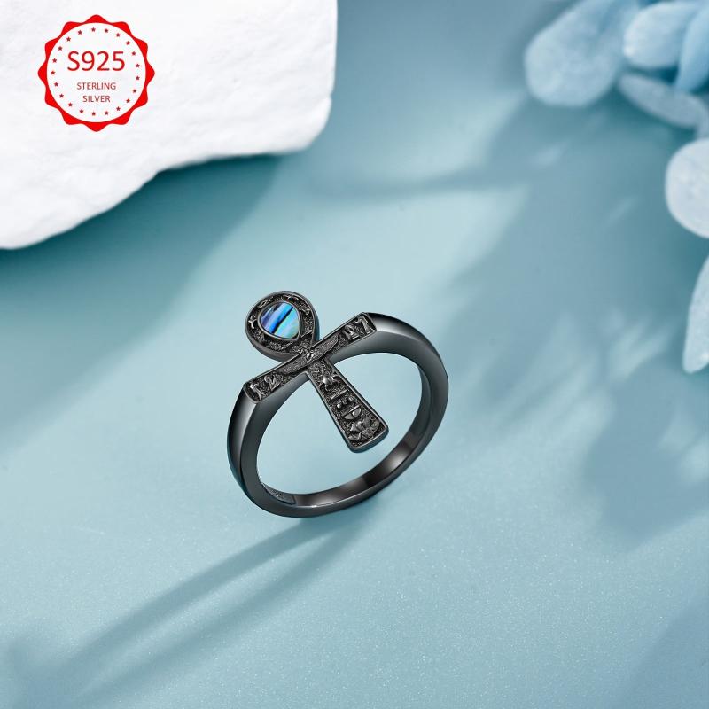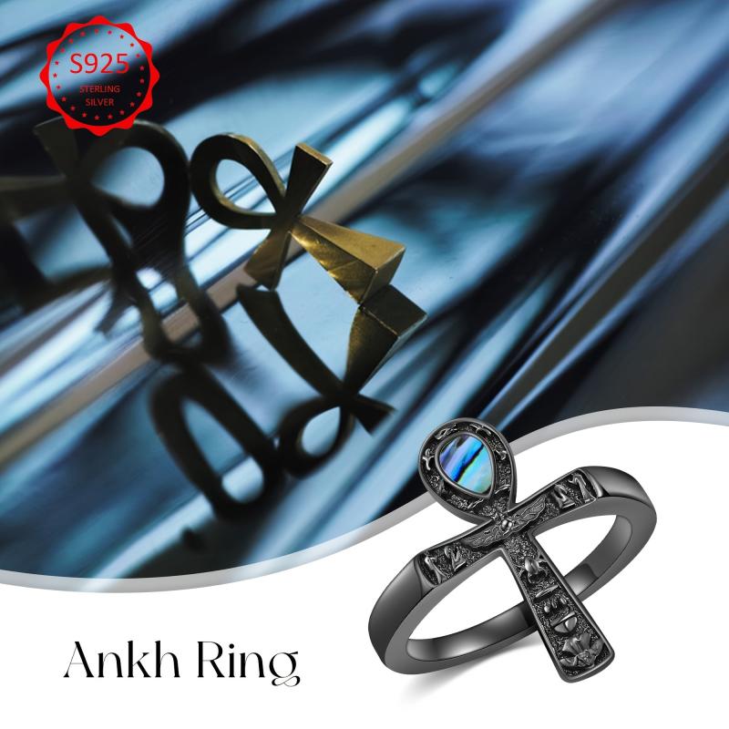 This Ankh ring features the Eye of Horus design with abalone shell, showcasing Egyptian Pagan symbolism. Crafted from high-quality 925 sterling silver, this unique piece is perfect for those who appreciate ancient cultures and spiritual meanings.