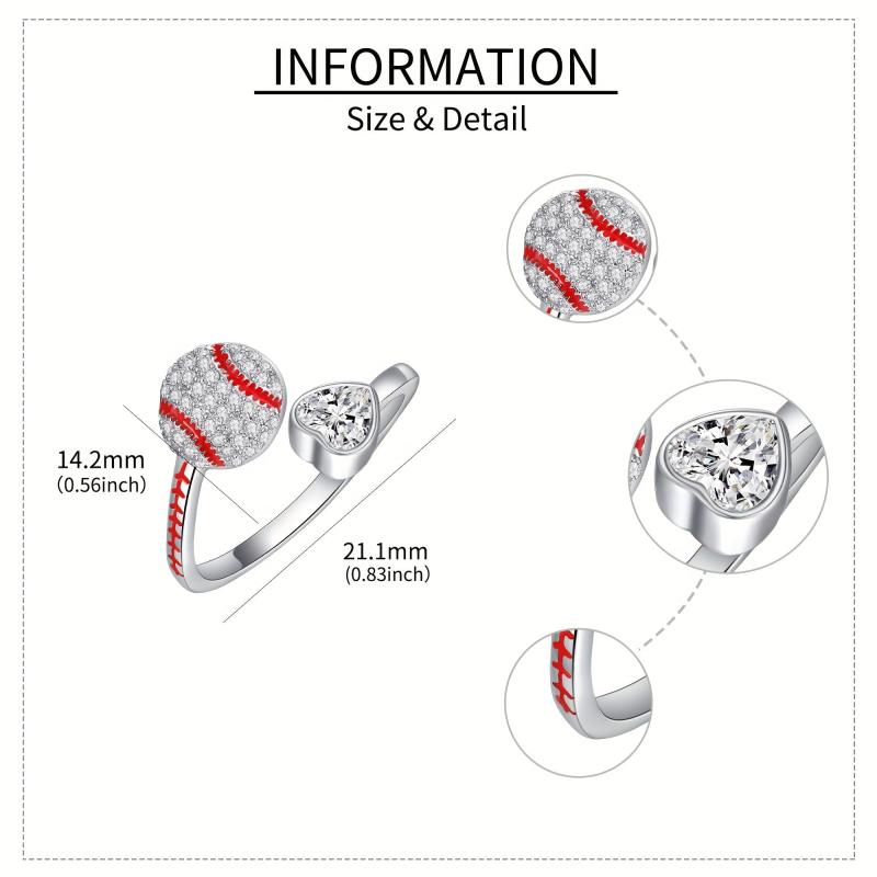 Show off your love for baseball with this stunning S925 sterling silver baseball heart ring. Perfect for women and girls who are passionate about the sport.