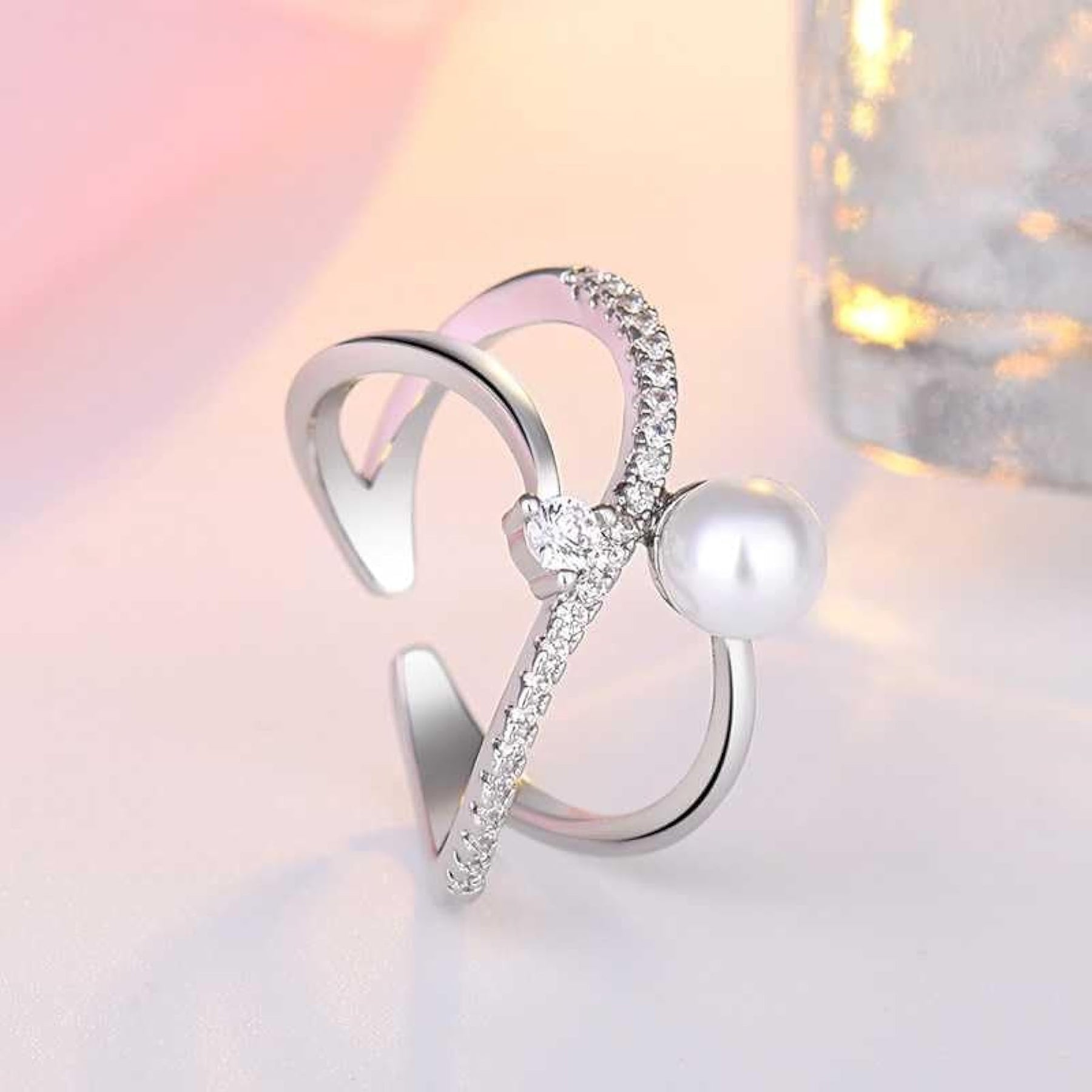 Elevate your style with the Bling Queen Plated Pearl and Cubic Zirconia Open Ring, a stunning piece that adds a touch of elegance to any outfit.