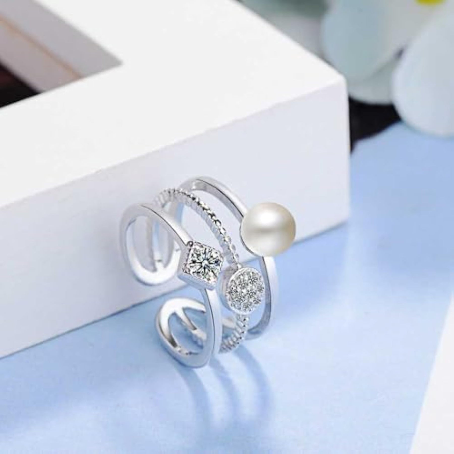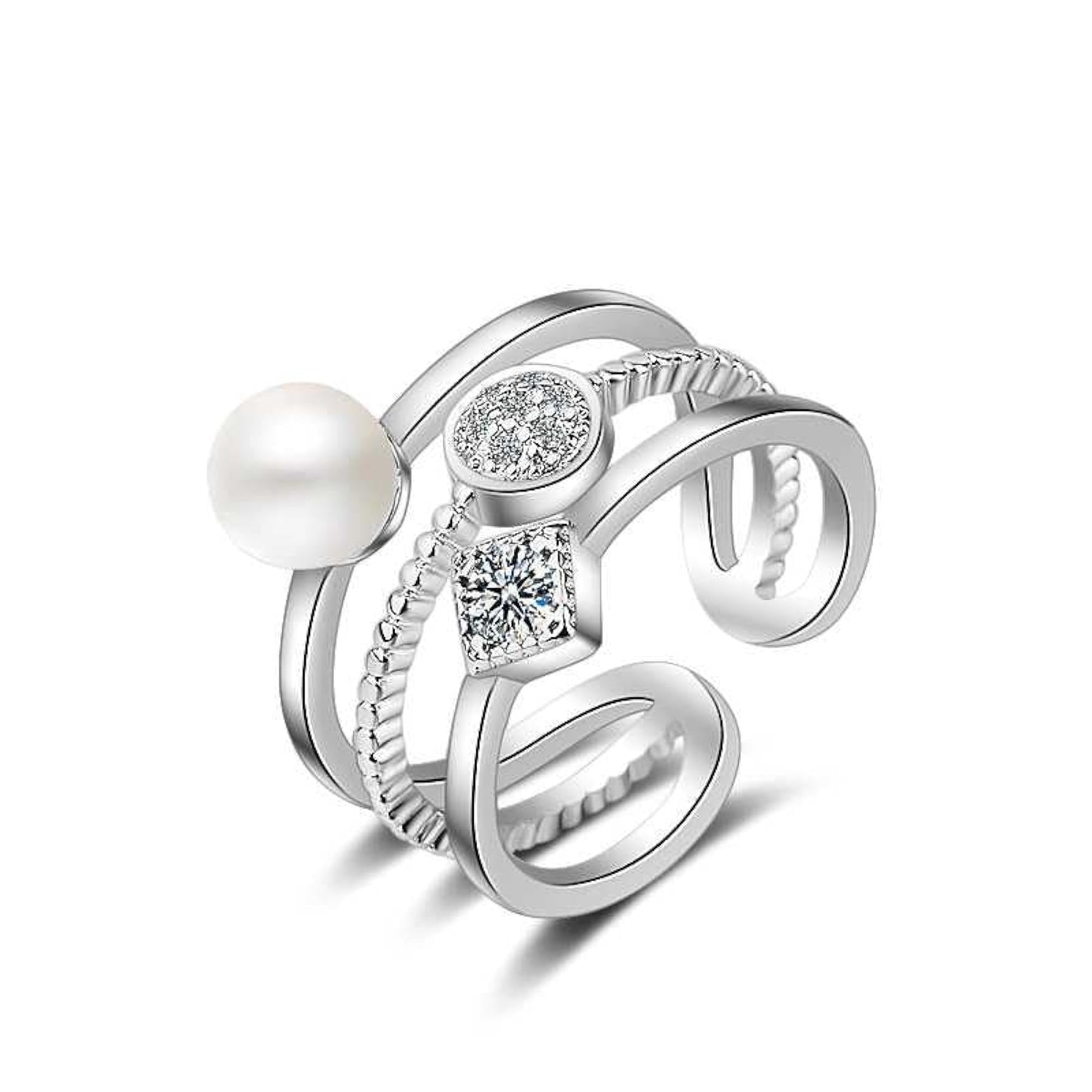 Elevate your style with this stunning open ring featuring pearls and cubic zirconia.
