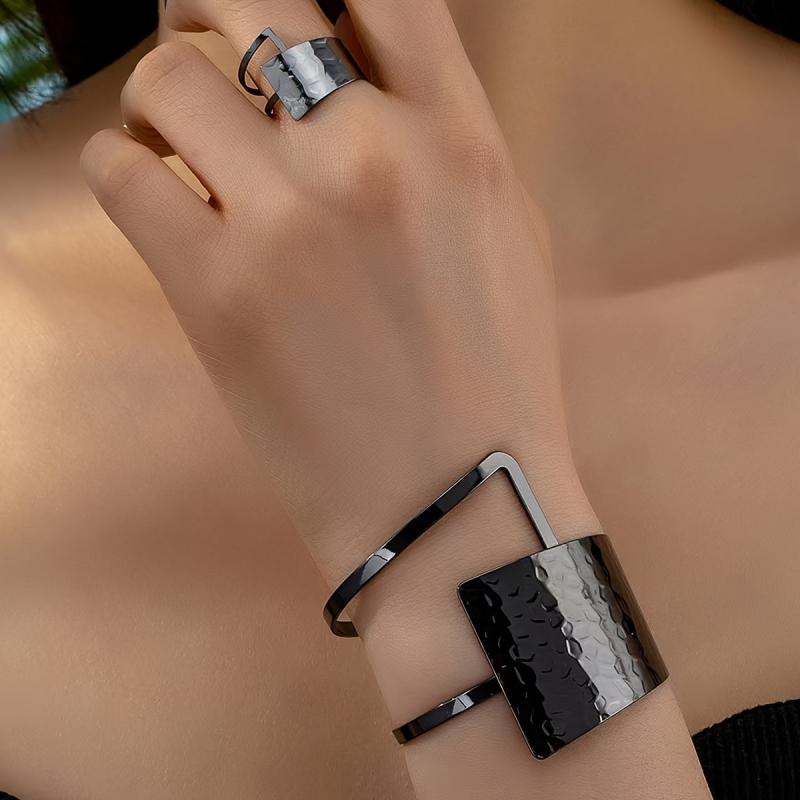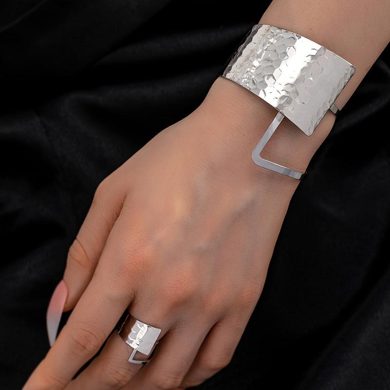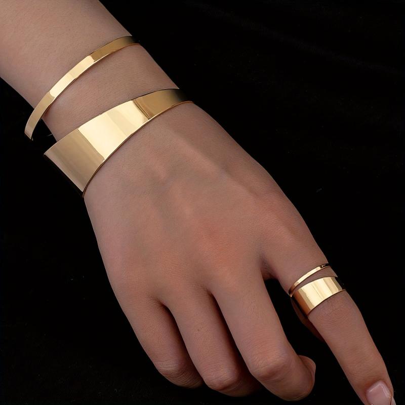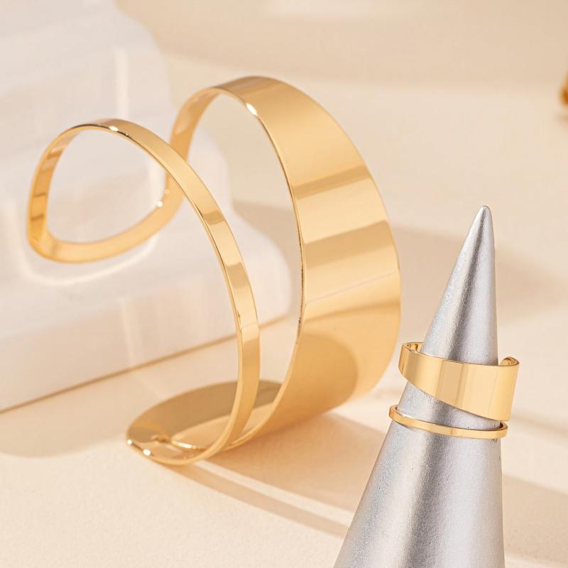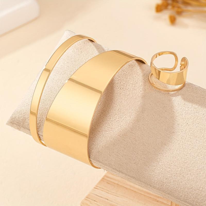 Elevate your style with this 2pcs Bohemian Alloy Texture Open Bracelet Ring Set. Perfect for daily wear, this set adds a touch of trendy elegance to your outfit.