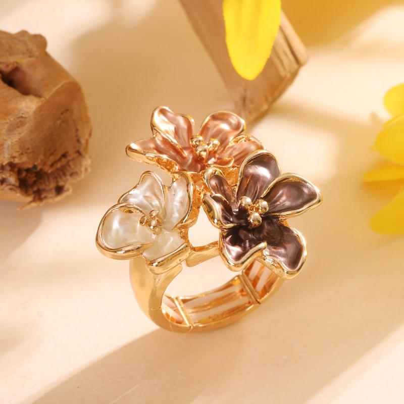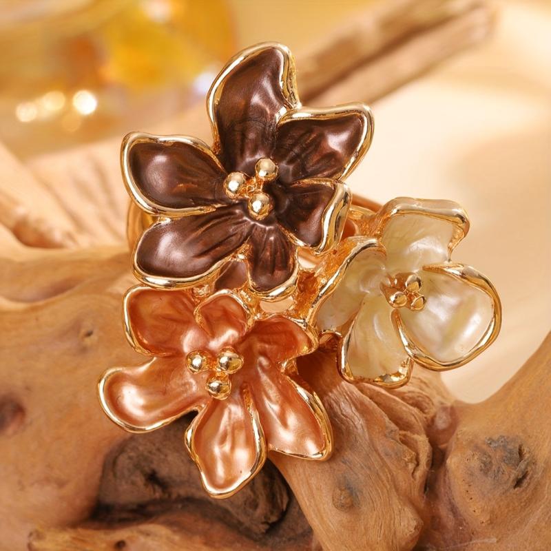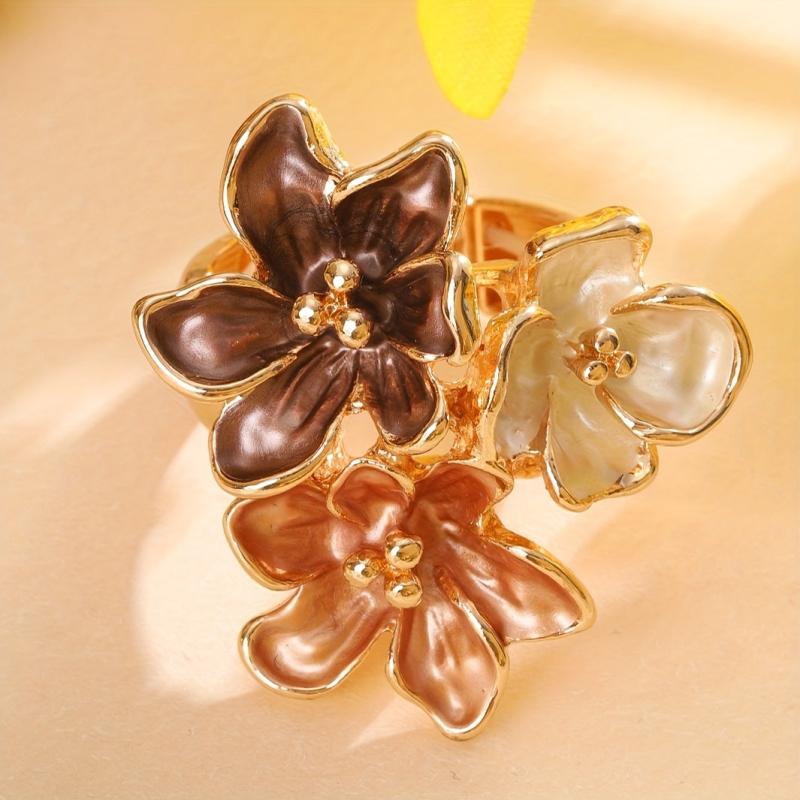 Add a touch of bohemian style with this zinc alloy ring featuring a brown flower. Perfect for daily wear, parties, or as a Mother's gift.
