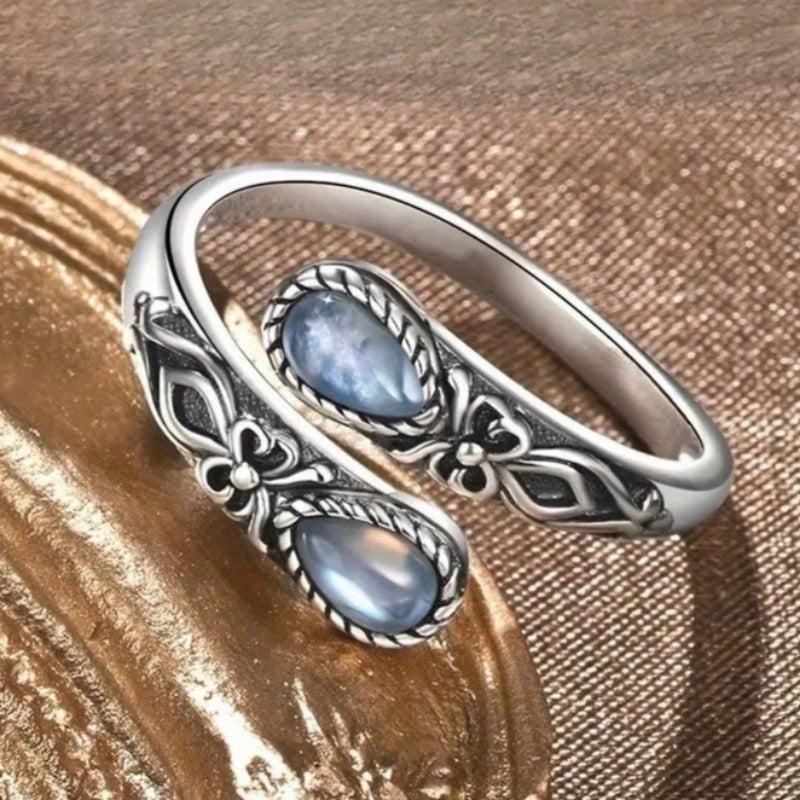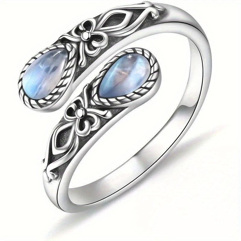 Add a touch of bohemian charm with this vintage-style ring featuring a butterfly inlay synthetic moonstone. The open adjustable design makes it suitable for daily casual wear or as a gift for someone special.