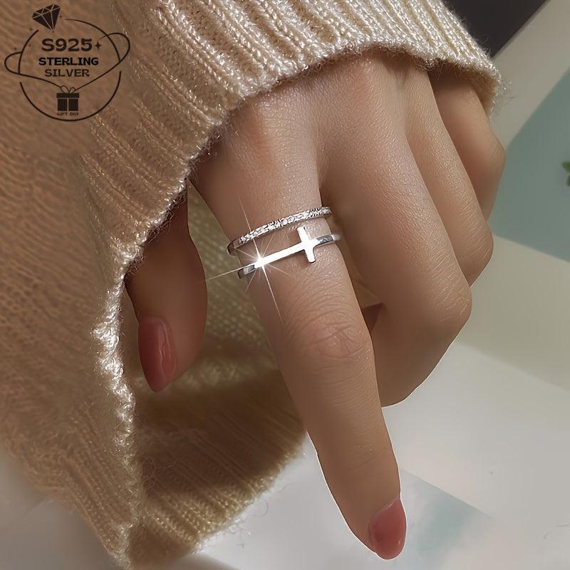 This stunning 925 silver ring features a beautiful bohemian cross design. It is adjustable and perfect for daily wear, parties, and vacations.