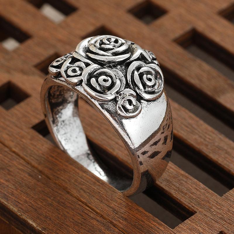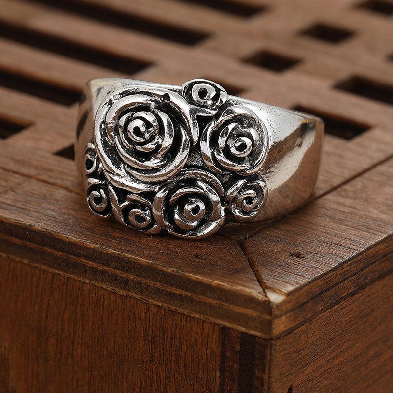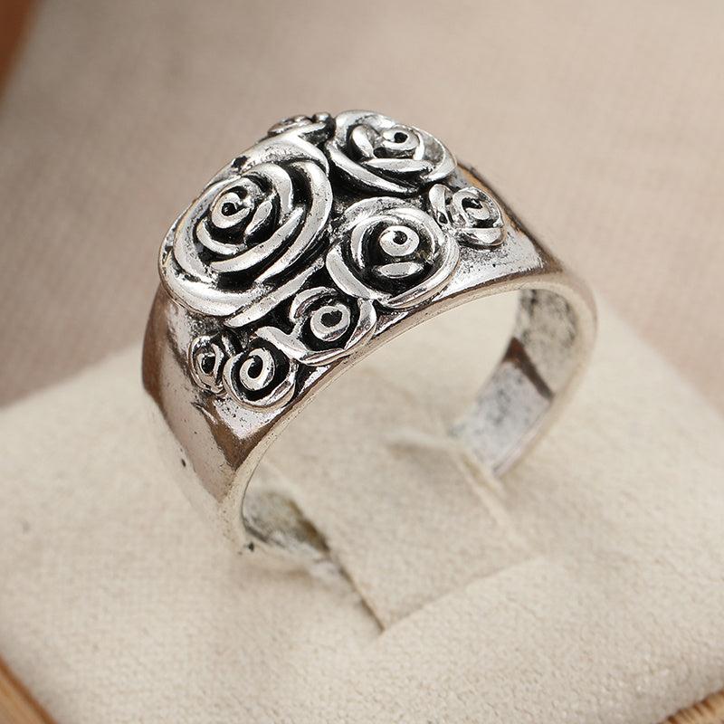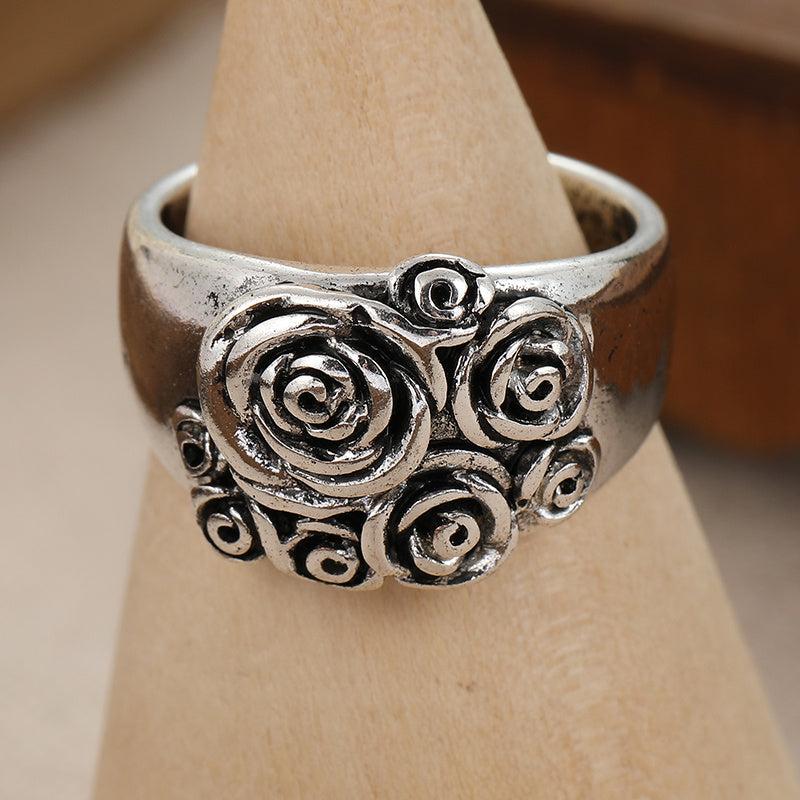 Add a touch of bohemian charm to your look with this vintage-inspired floral ring. Crafted from copper with a rose gold K plating, this ring features intricate detailing and a textured surface for a unique and stylish finish. Perfect for everyday wear or as a special gift for her.