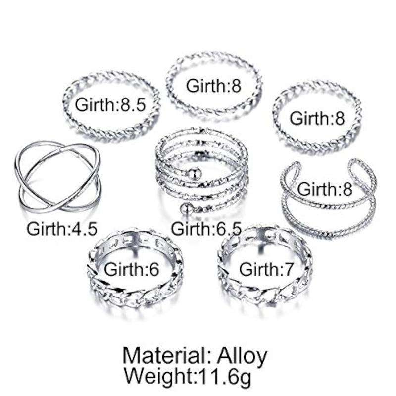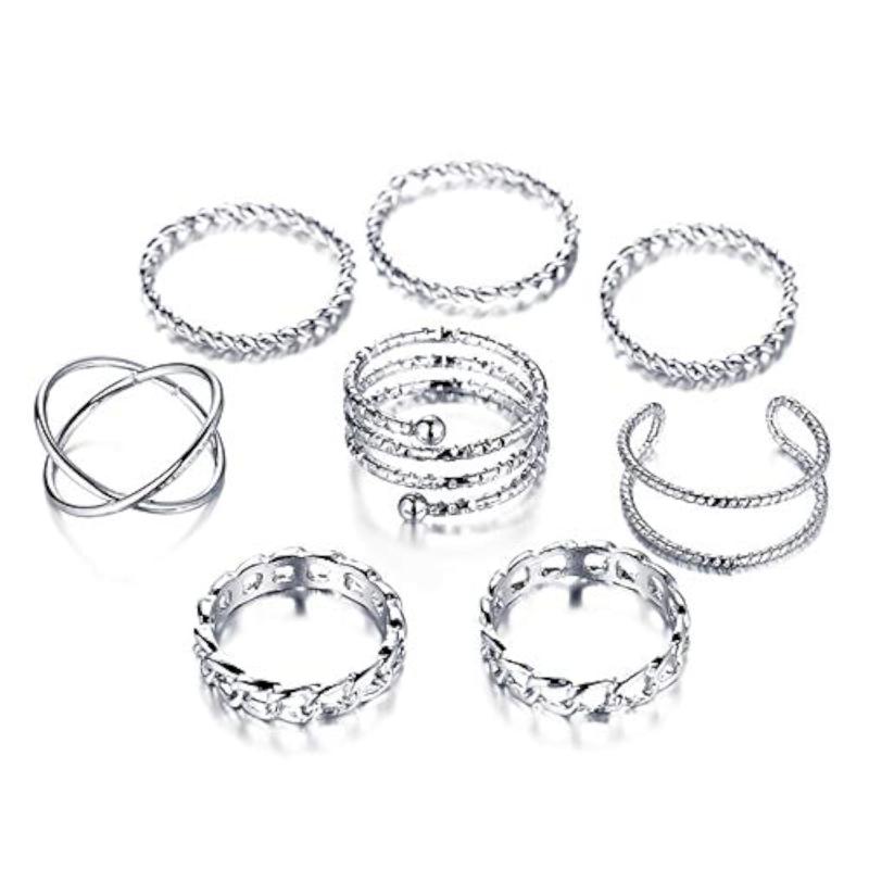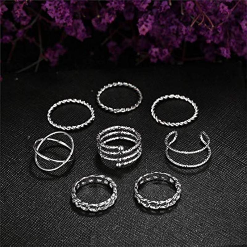 Enhance your style with this trendy set of 8 bohemian oxidised rings. Perfect for everyday wear and special occasions.