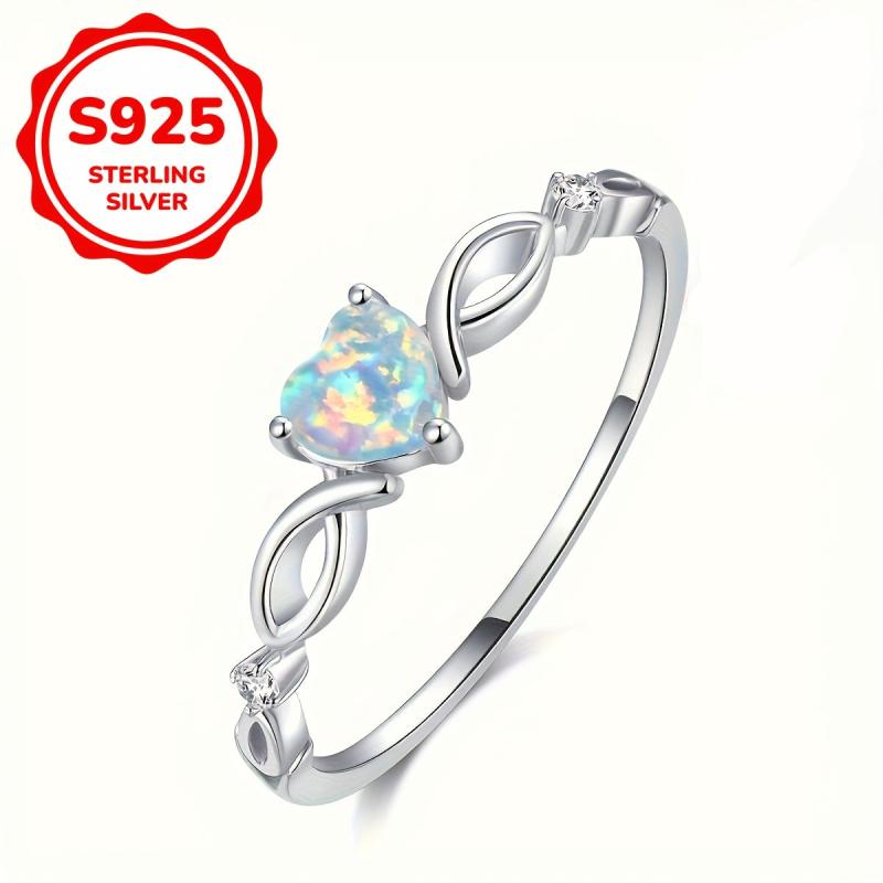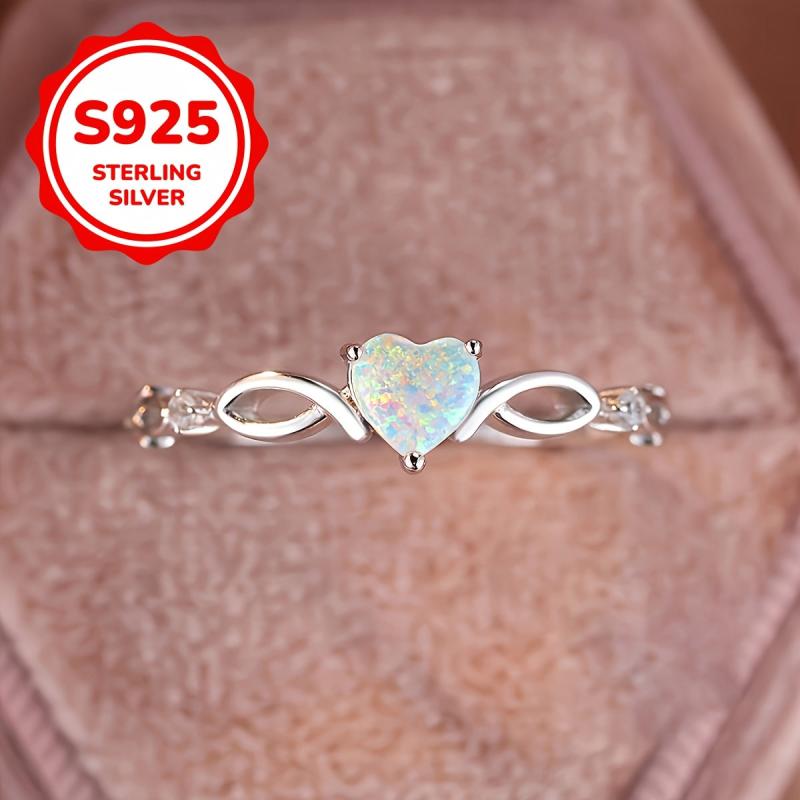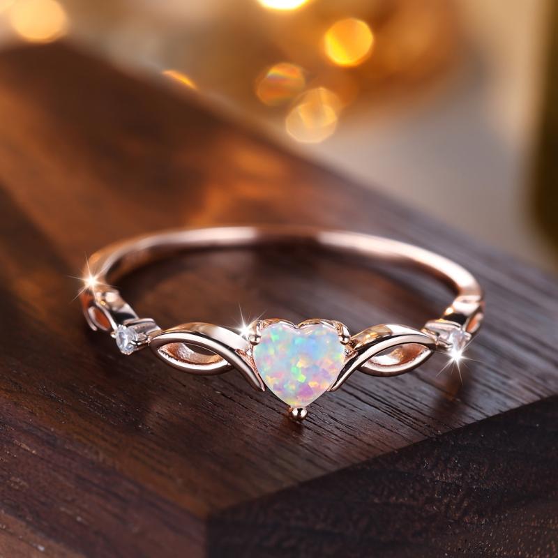 Add a touch of bohemian glamour to your look with this sparkling synthetic opal heart ring. Perfect for weddings, parties, or any special occasion.