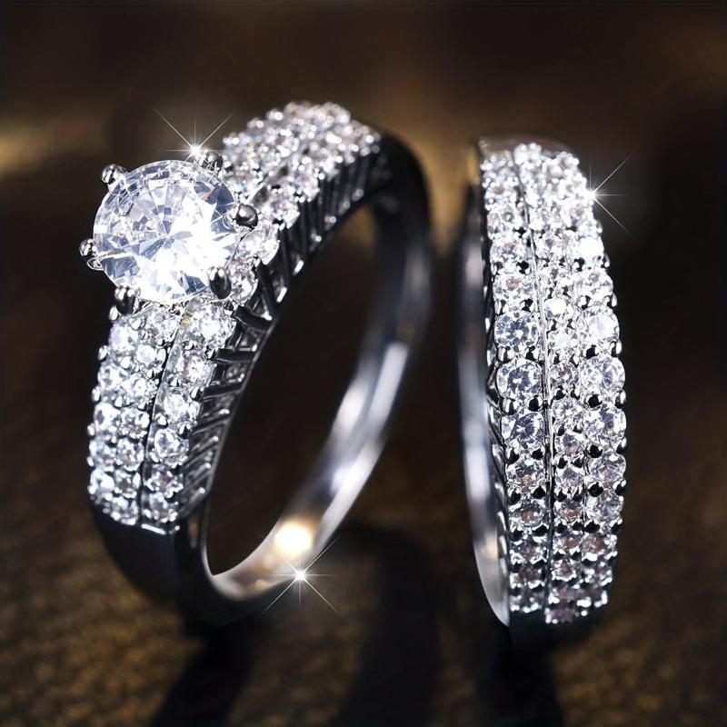 This set includes two claw-set synthetic zirconia rings that are perfect for formal events. The rings feature a bohemian style with sparkling cubic zirconia, adding elegance to your look.