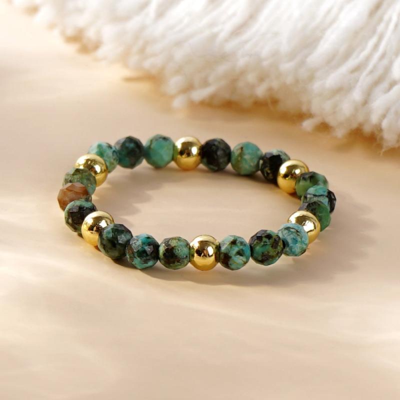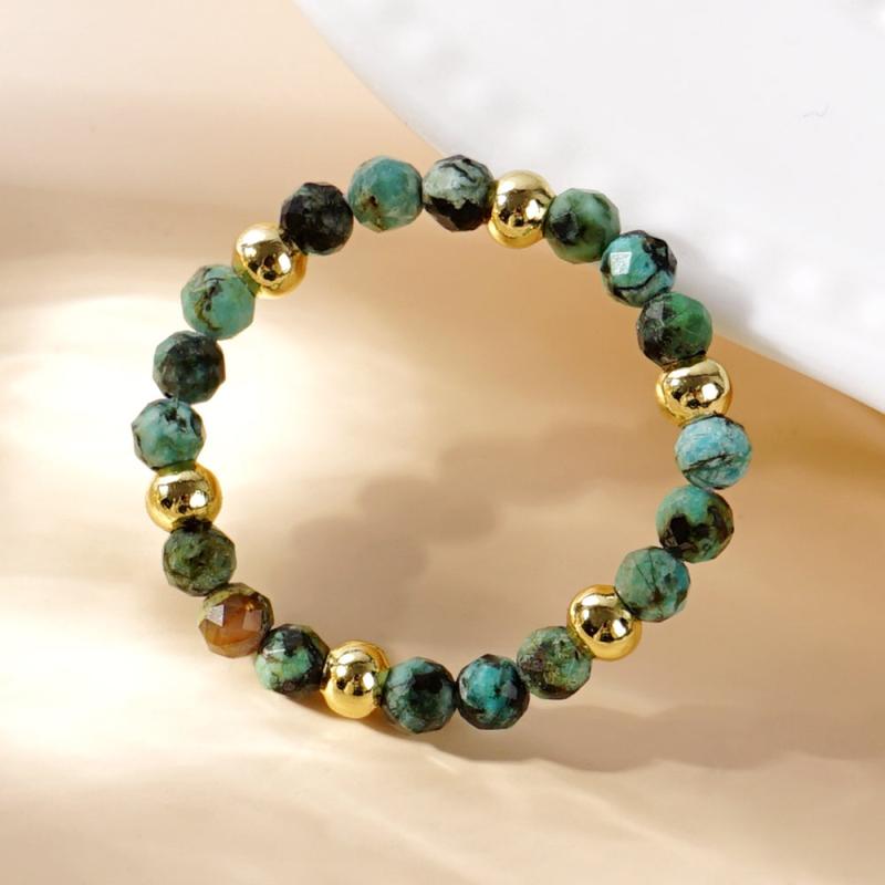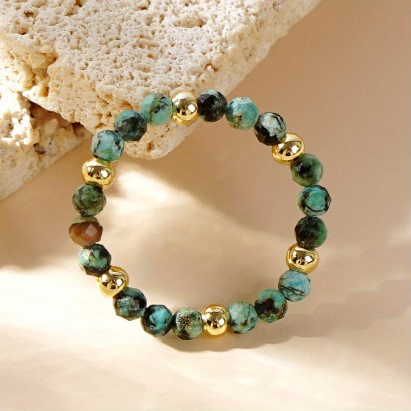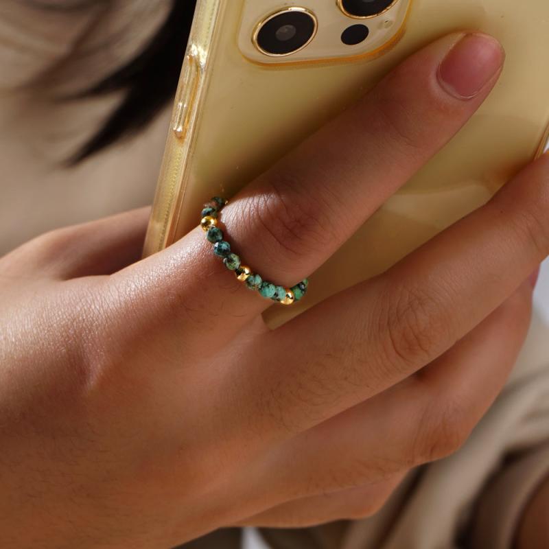 Add a touch of bohemian flair to your outfit with this vintage turquoise stone beaded ring. It is stackable and features an African-inspired design.