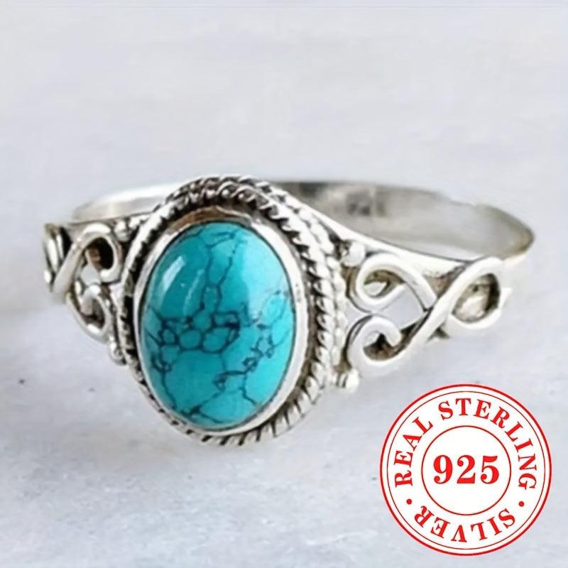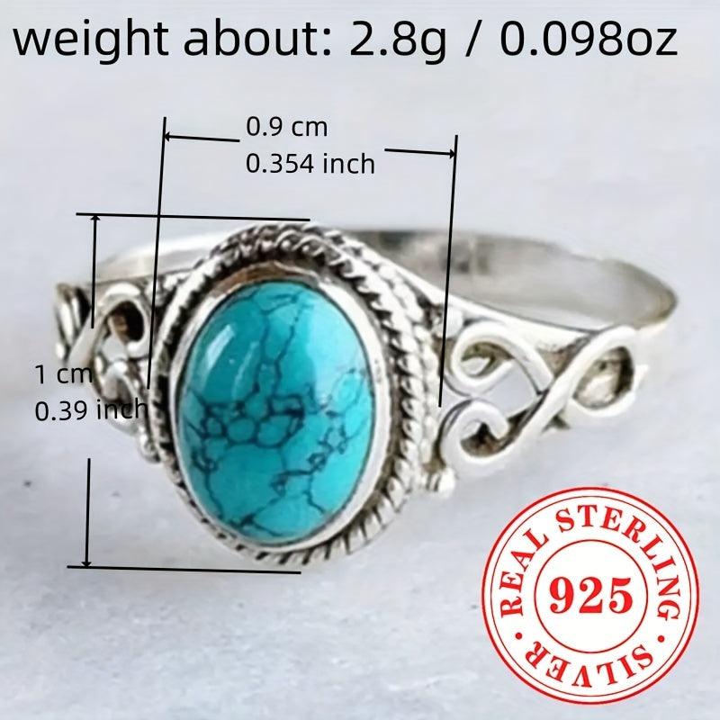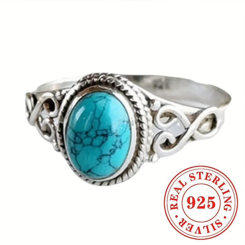 Bohemian Vintage Style Lady's Ring, 925 Sterling Silver, Artificial Gemstones