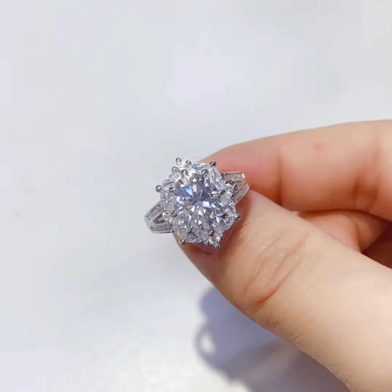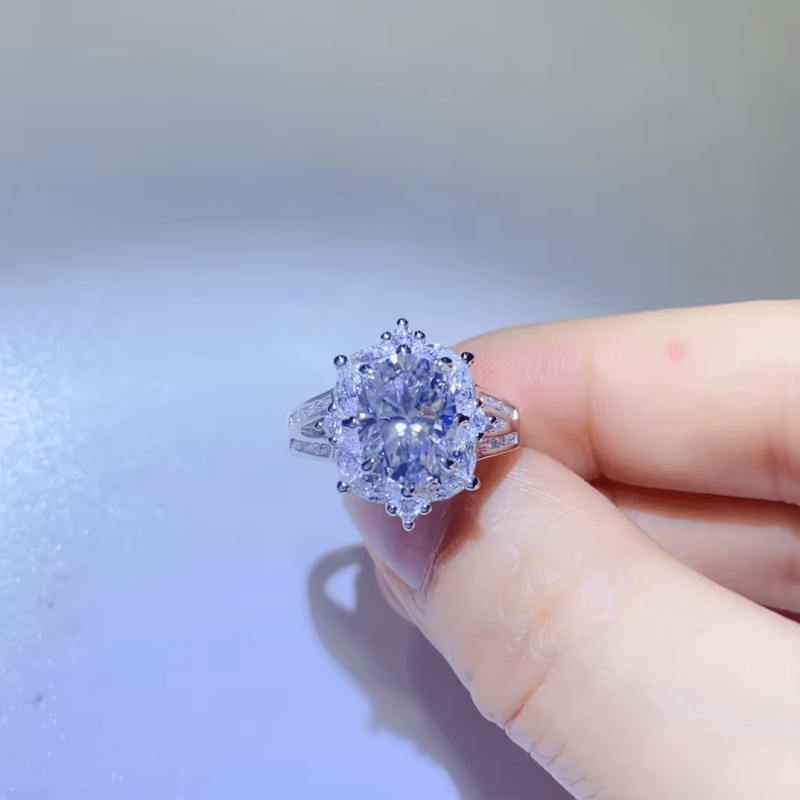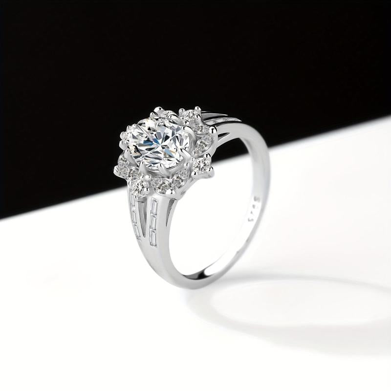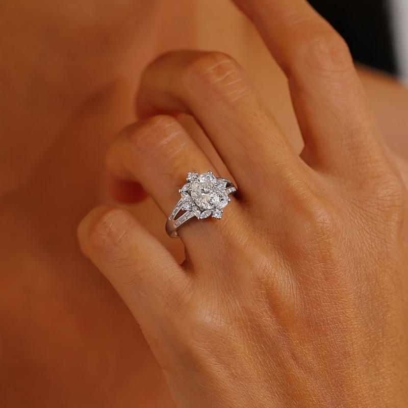 Elegant and timeless, this 2ct oval Moissanite engagement ring is crafted from 925 sterling silver plated for low allergy. Perfect for everyday wear or special occasions.