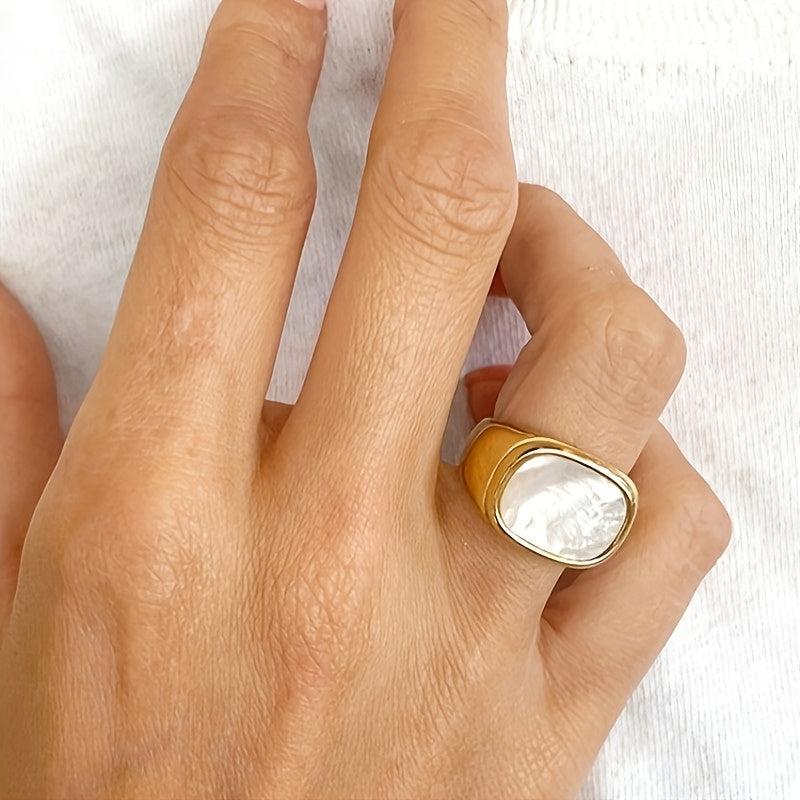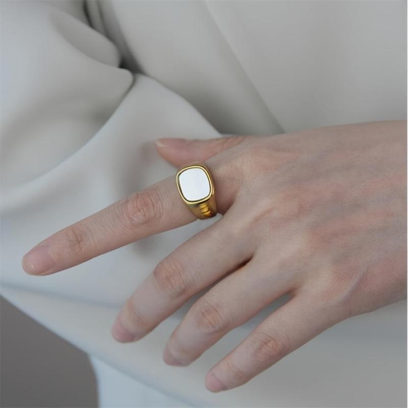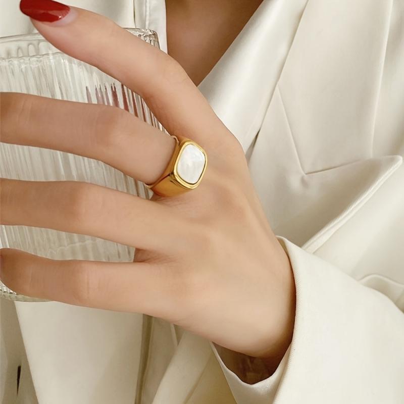 This boho-style ring features a square design with enamel detailing. Made with stainless steel, it's perfect for daily wear and makes an ideal gift for the year.
