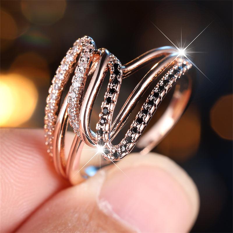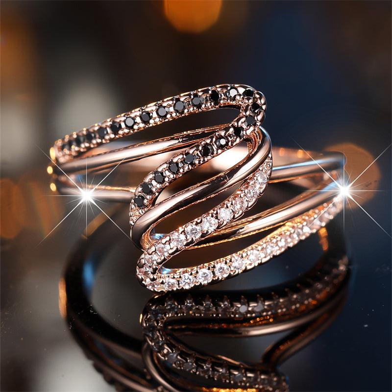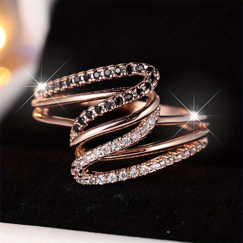 This vintage-style ring features a boho geometric design with synthetic zirconia stones set in rose gold plating. Perfect for weddings, parties, or daily wear, and makes a great mother's gift idea.