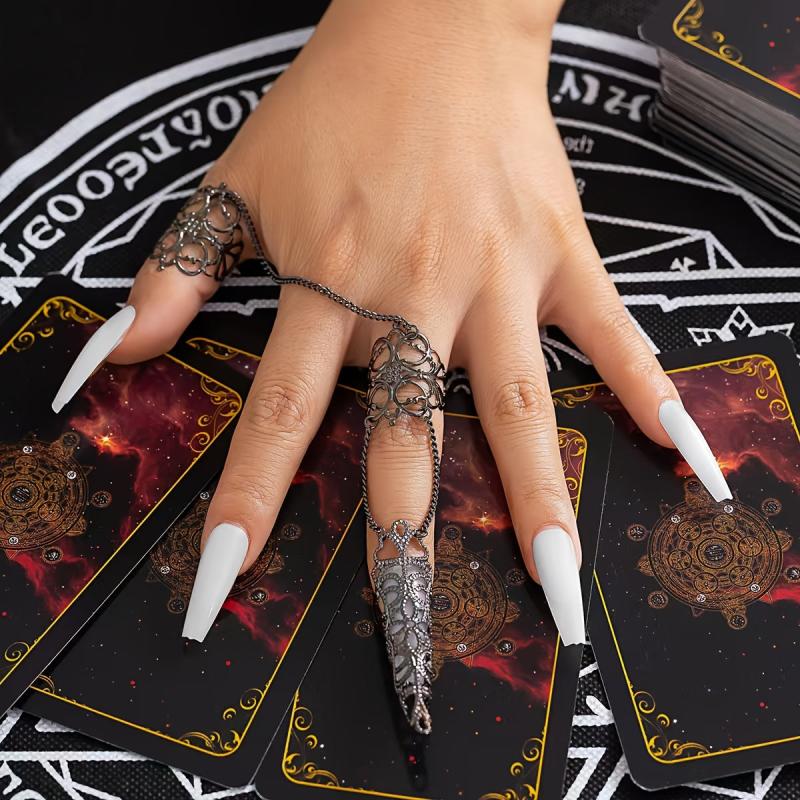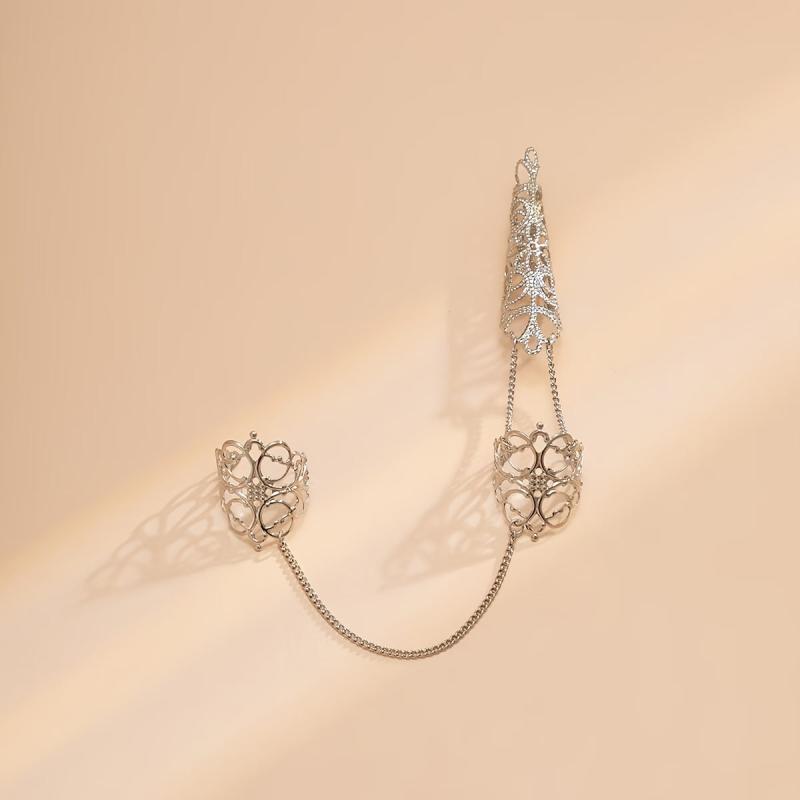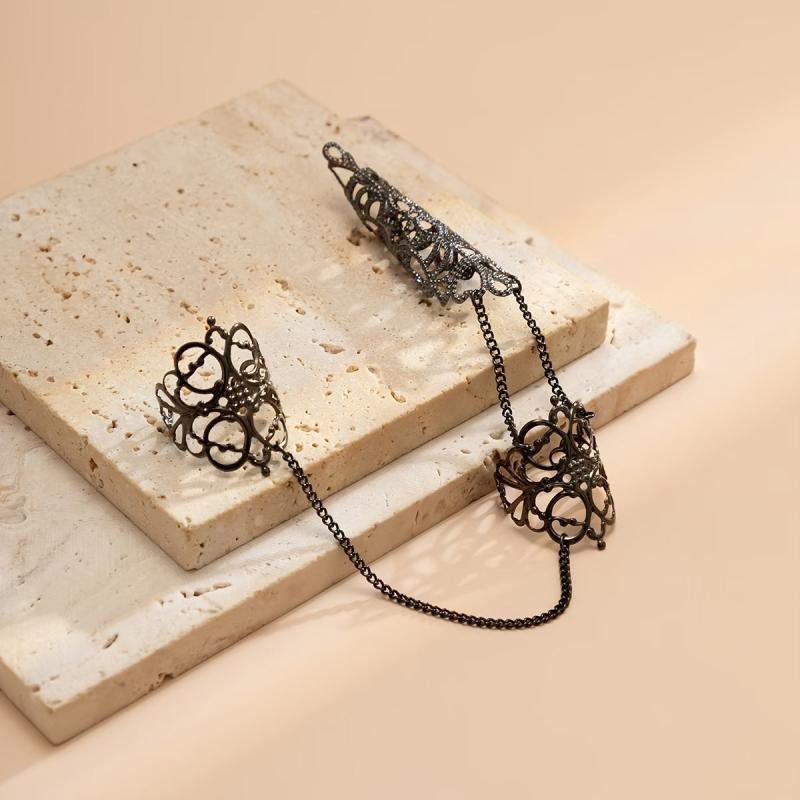 Elevate your style with these boho gothic inspired nail covers featuring a golden chain and floral design. Perfect for daily wear, these durable rings add a touch of elegance to any outfit.