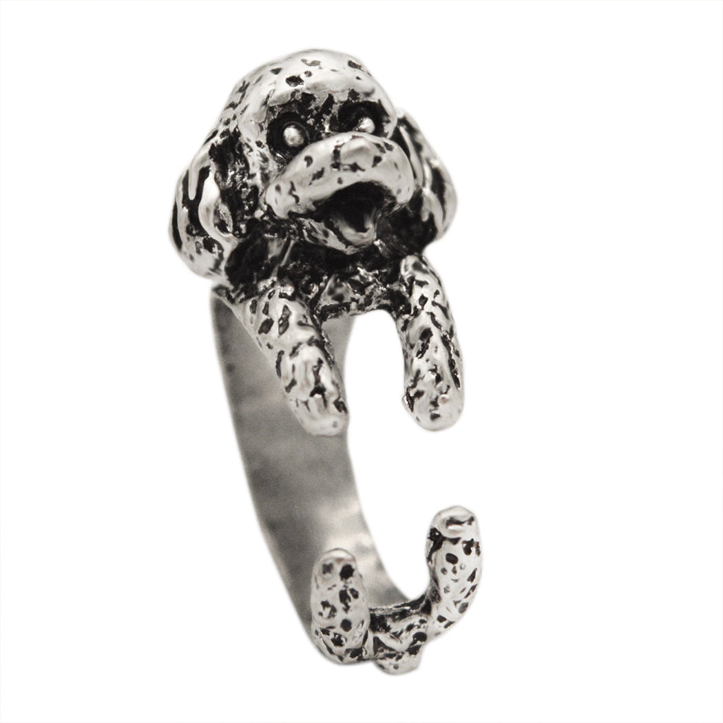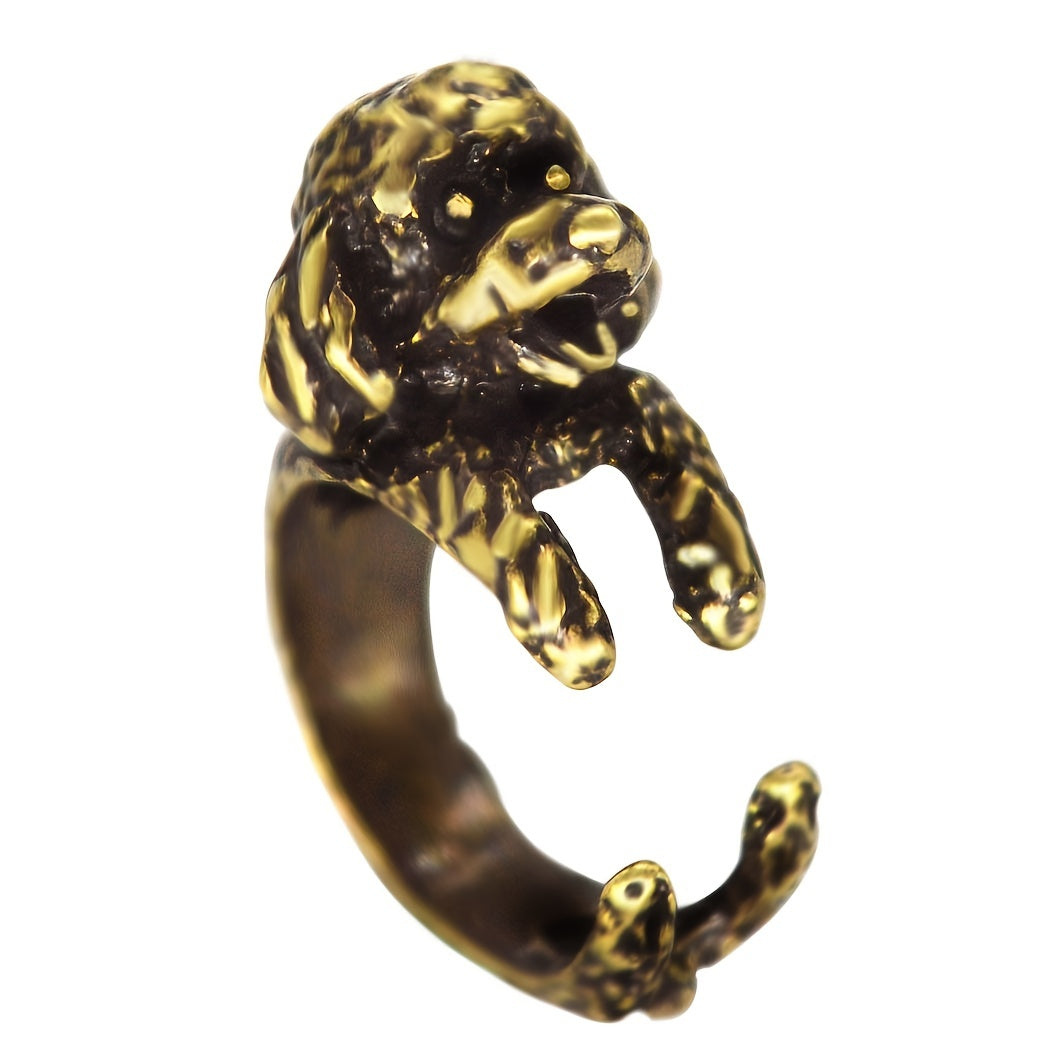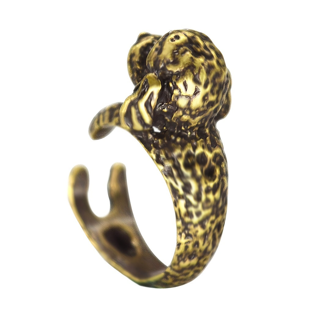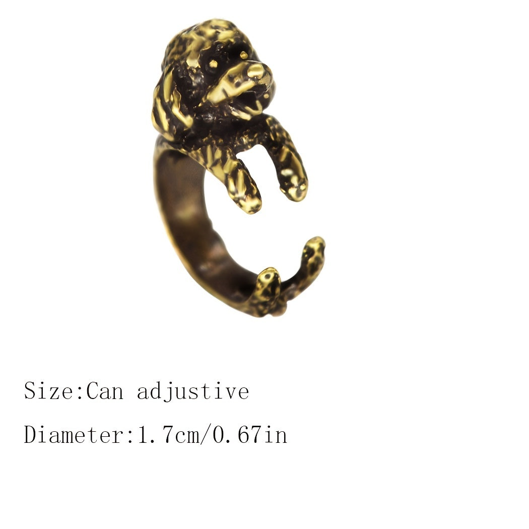 This boho poodle dog animal ring is a perfect gift for pet lovers. It is a unique and adjustable statement piece that adds a touch of charm to any outfit.