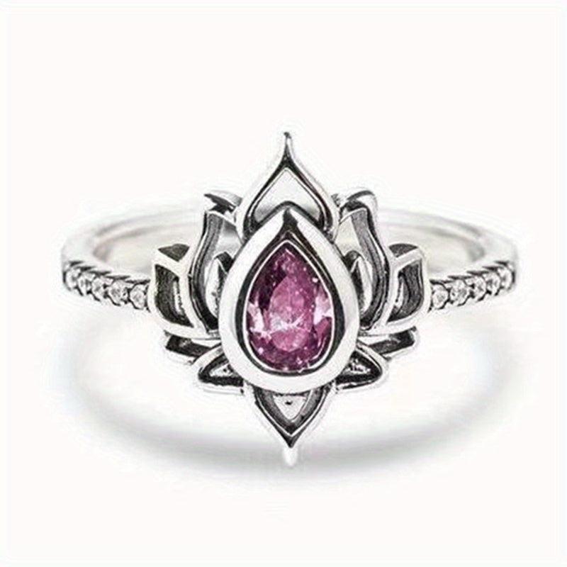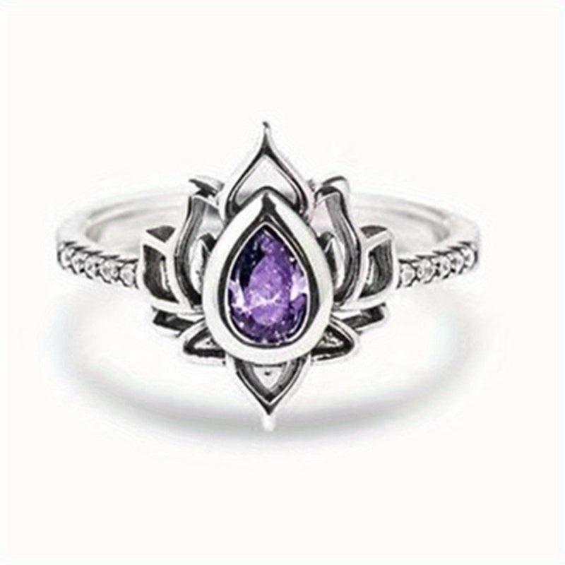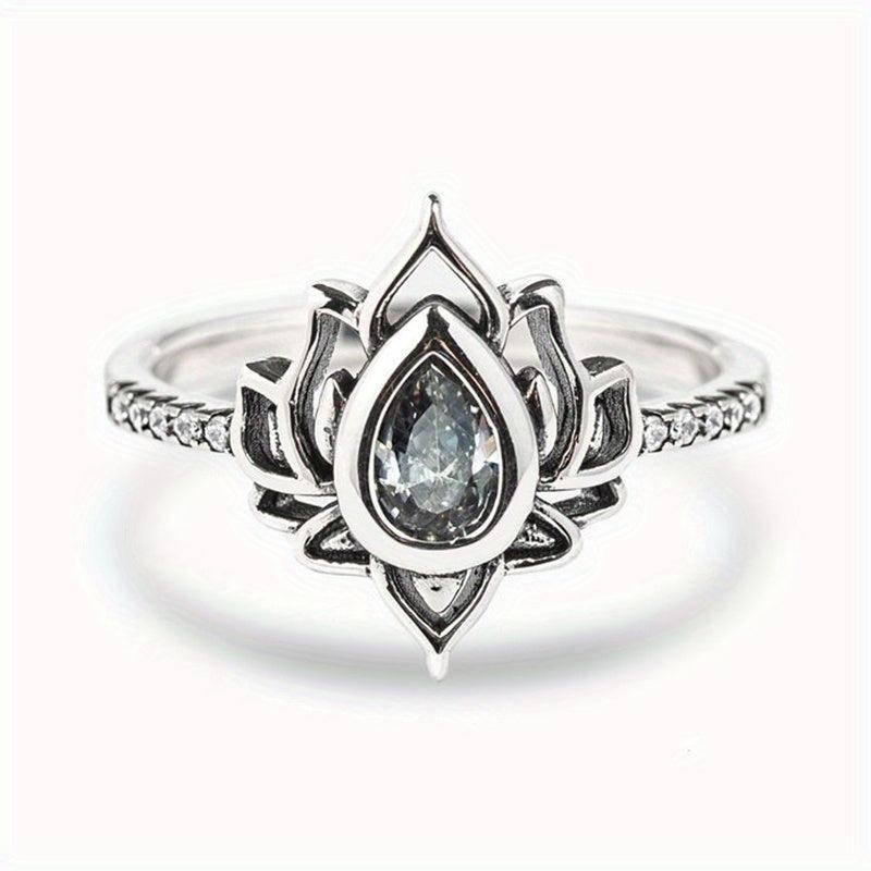 Add a touch of boho chic to your look with this stunning silver plated lotus promise ring featuring an inlaid teardrop shape aquamarine. Perfect for engagement, wedding, brides, evening party or everyday wear.